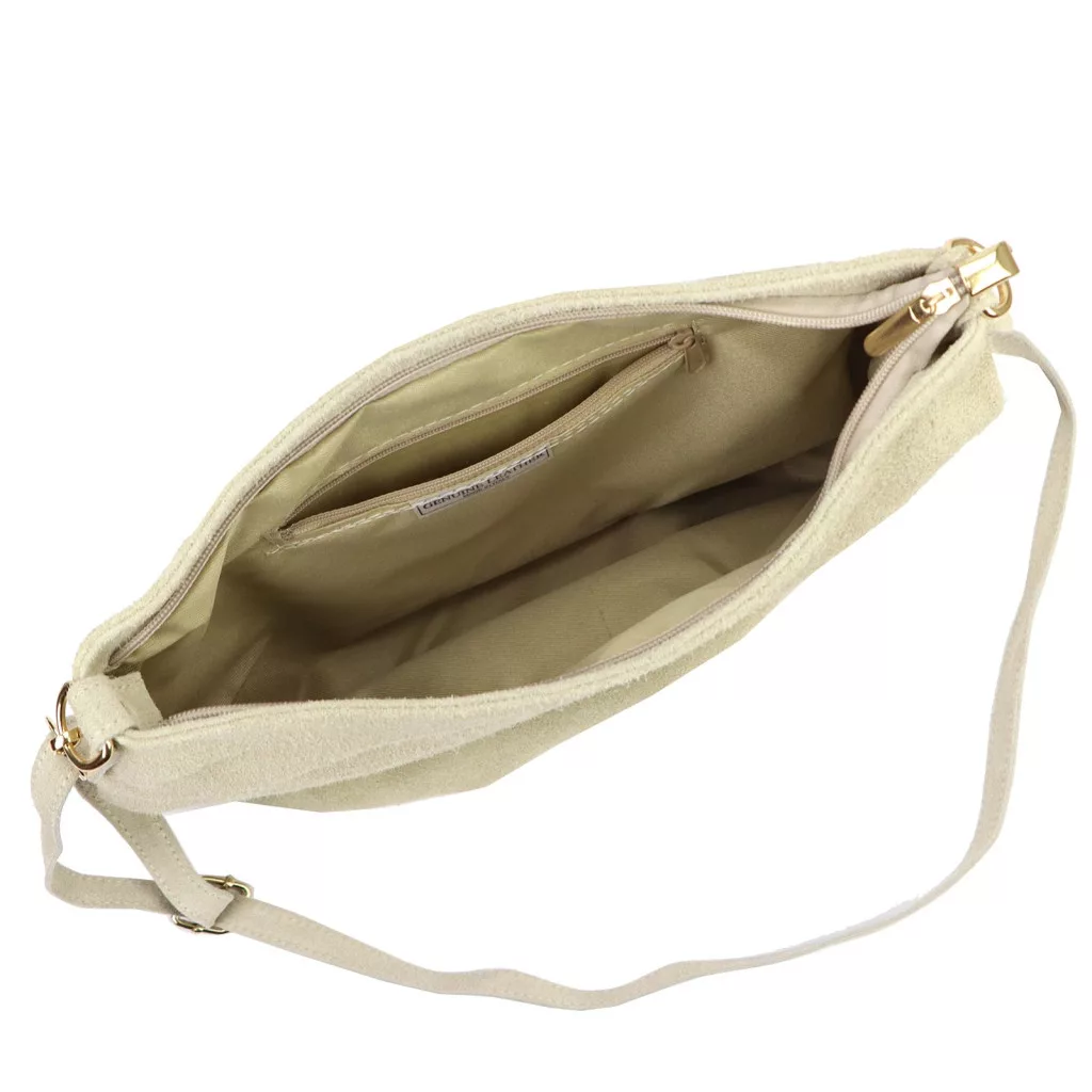 Luka 26-098 bézs női velúr bőr válltáska, oldaltáska 37 x 26 x 5 cm