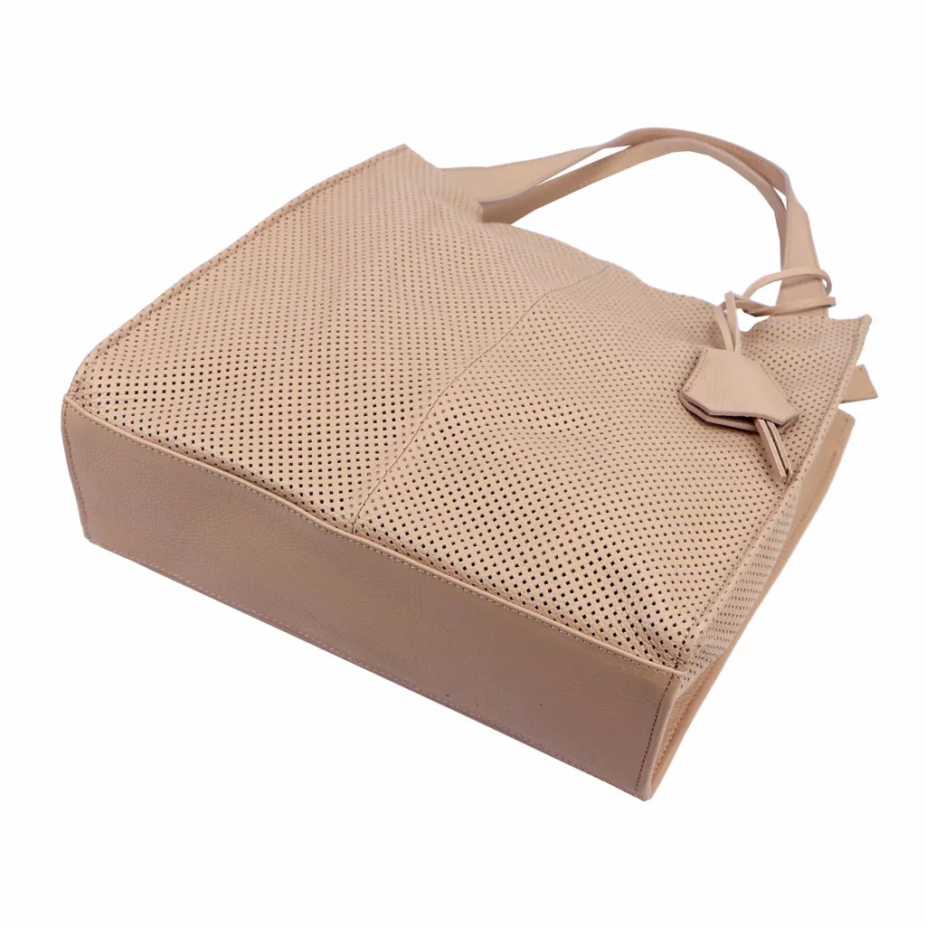 Modern, elegáns és természetes megjelenés. A perforált felület, a lágy struktúra és a drapp árnyalat harmonikus, kifinomult karaktert ad a táskának, amely tökéletes választás a stílusos mindennapokhoz.