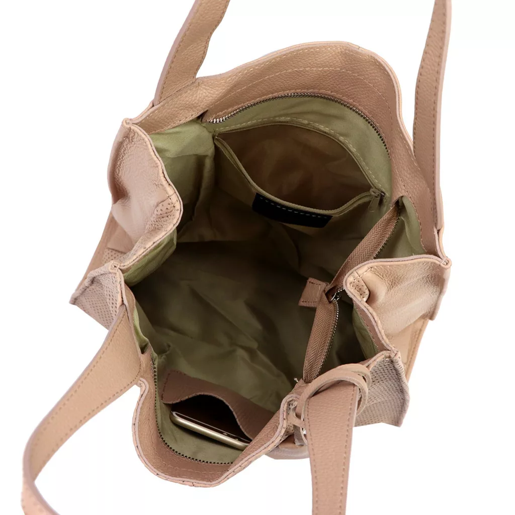 A Luka 26-099 DOLLARO drapp női bőr kézitáska modern és letisztult megjelenésű darab, amely a minimalista stílust természetes, visszafogott árnyalattal ötvözi. Tágas kialakítása és puha esése kényelmes viseletet biztosít, miközben elegáns és harmonikus megjelenést kölcsönöz a mindennapok során.