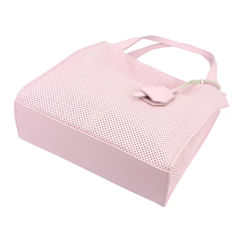 Modern, nőies és elegáns megjelenés. A perforált felület, a lágy struktúra és a pasztell rózsaszín árnyalat finom, romantikus karaktert ad a táskának, amely tökéletes választás a stílusos mindennapokhoz.