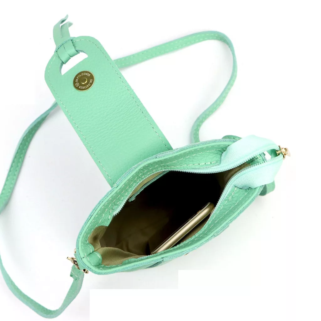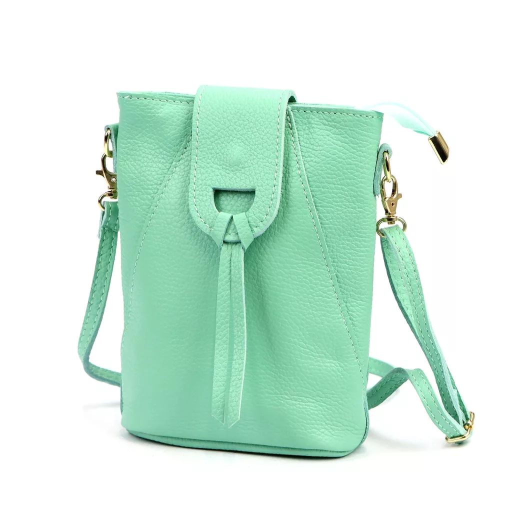 Luka 26-101 türkizzöld női bőr telefontartó, oldaltáska 16 x 21 x 6.5 cm