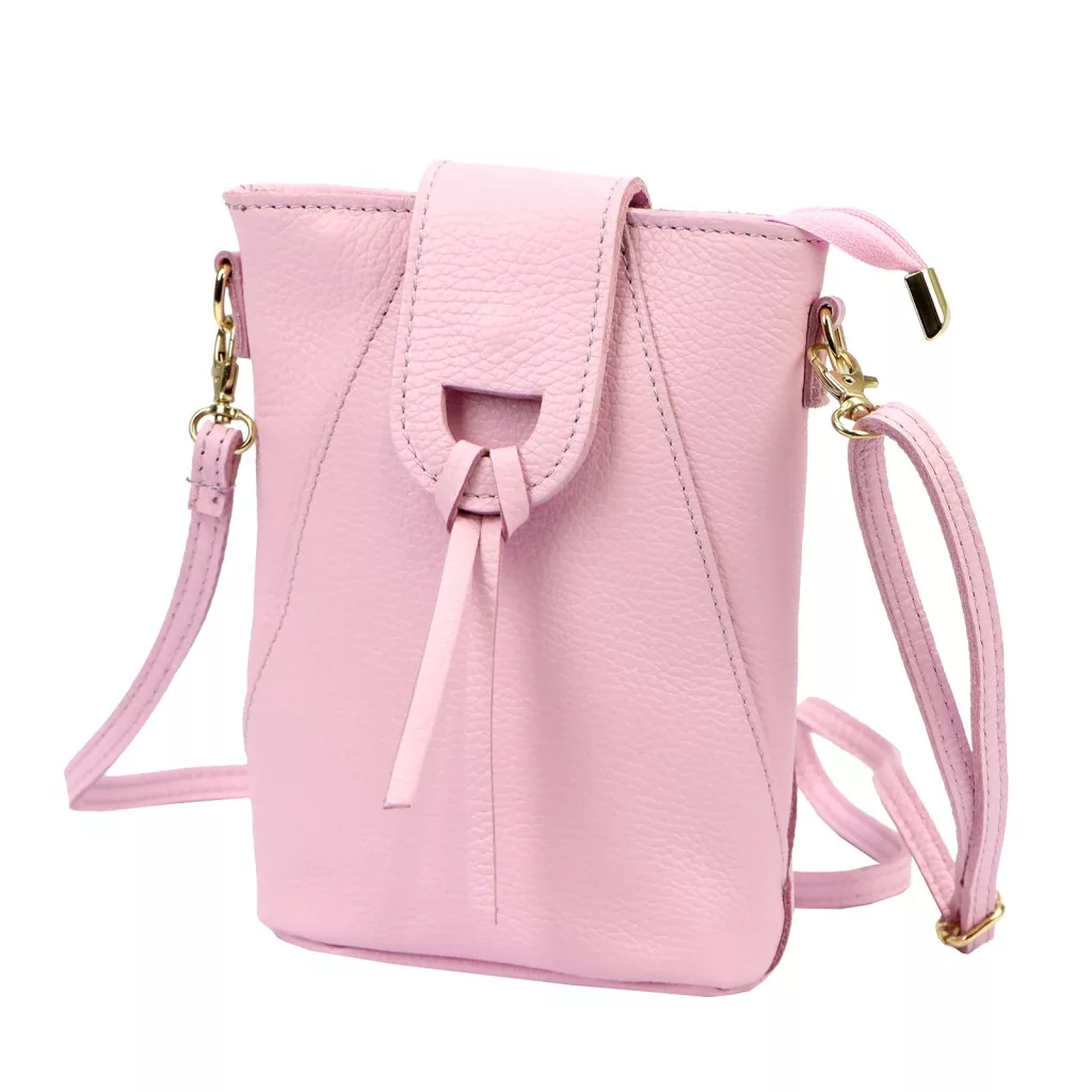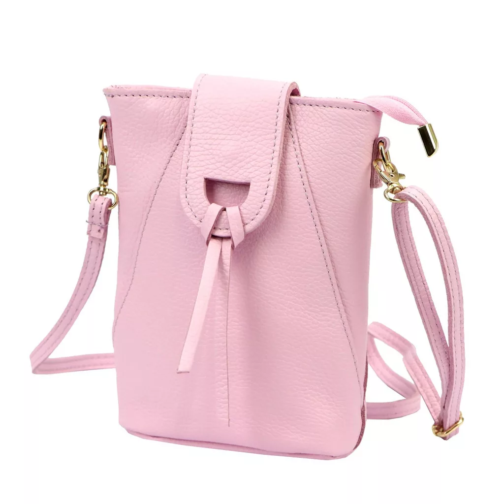 Luka 26-101 rózsaszín női bőr telefontartó, oldaltáska 16 x 21 x 6.5 cm