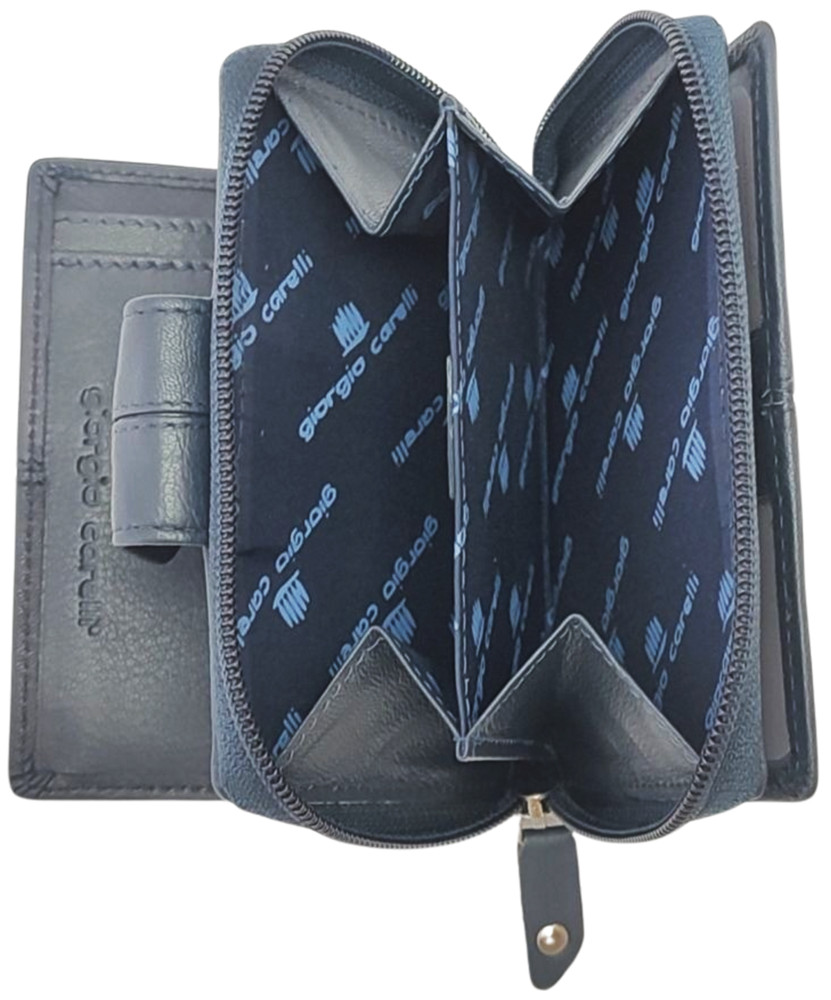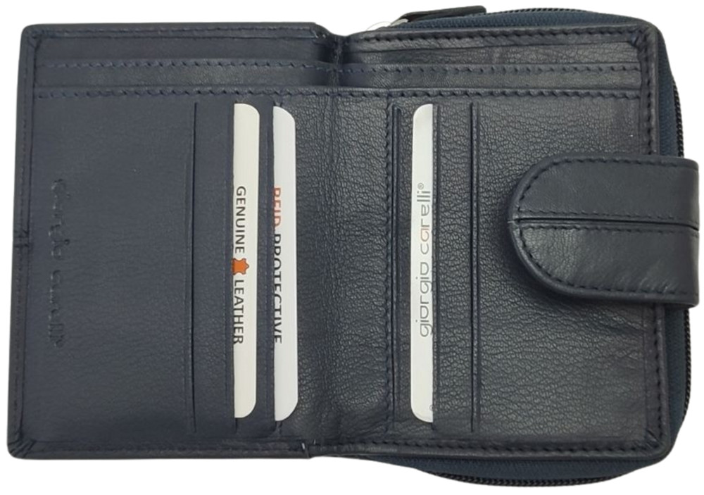 Giorgio Carelli női kék bőr átfogópántos pénztárca RFID védelemmel, 12 x 9 cm