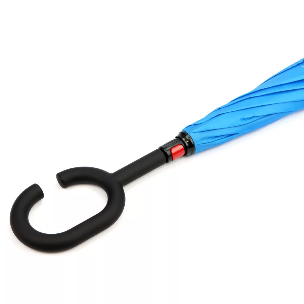 A tartós, vízlepergető poliészter anyag hatékony védelmet nyújt, a szélálló szerkezet pedig megbízható teljesítményt biztosít. Az esernyő végén található C alakú fogantyú ergonomikus, kényelmes fogást ad, és praktikus módon könnyen felakasztható táskára, kampóra vagy bármilyen kiálló felületre.