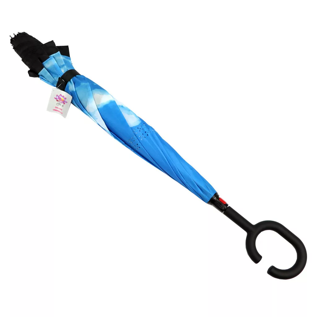 A Yili kétoldalas esernyő elegáns és különleges kiegészítő minden esős napra. A külső oldal egyszínű fekete, amely letisztult, klasszikus megjelenést biztosít. Amikor azonban kinyílik, a belső oldal egy felhős kék égbolt mintáját tárja eléd – friss, természetes és hangulatos látványt nyújtva, amely feldobja a borús időt.