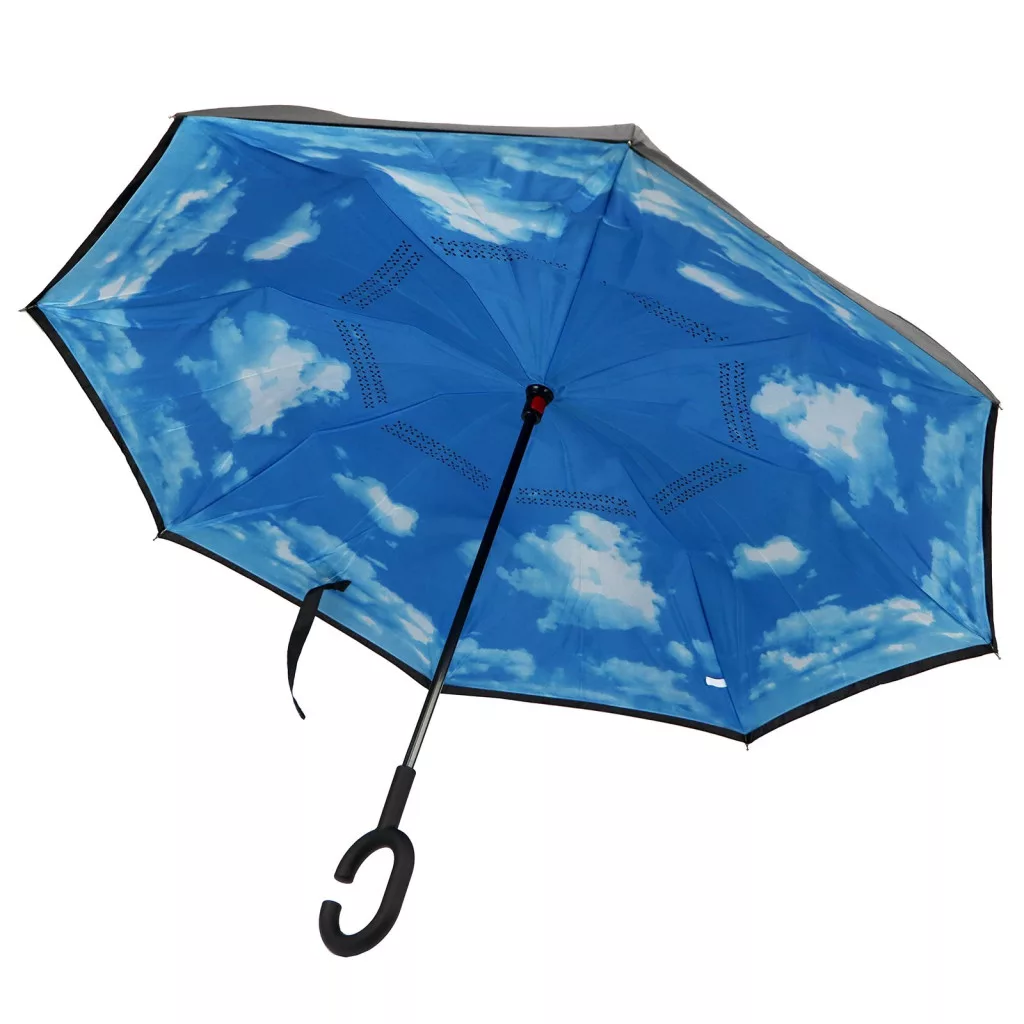 Yili Kétoldalas Esernyő – Külső Oldala Fekete, Belső Oldala Felhős Kék Égbolt Mintával