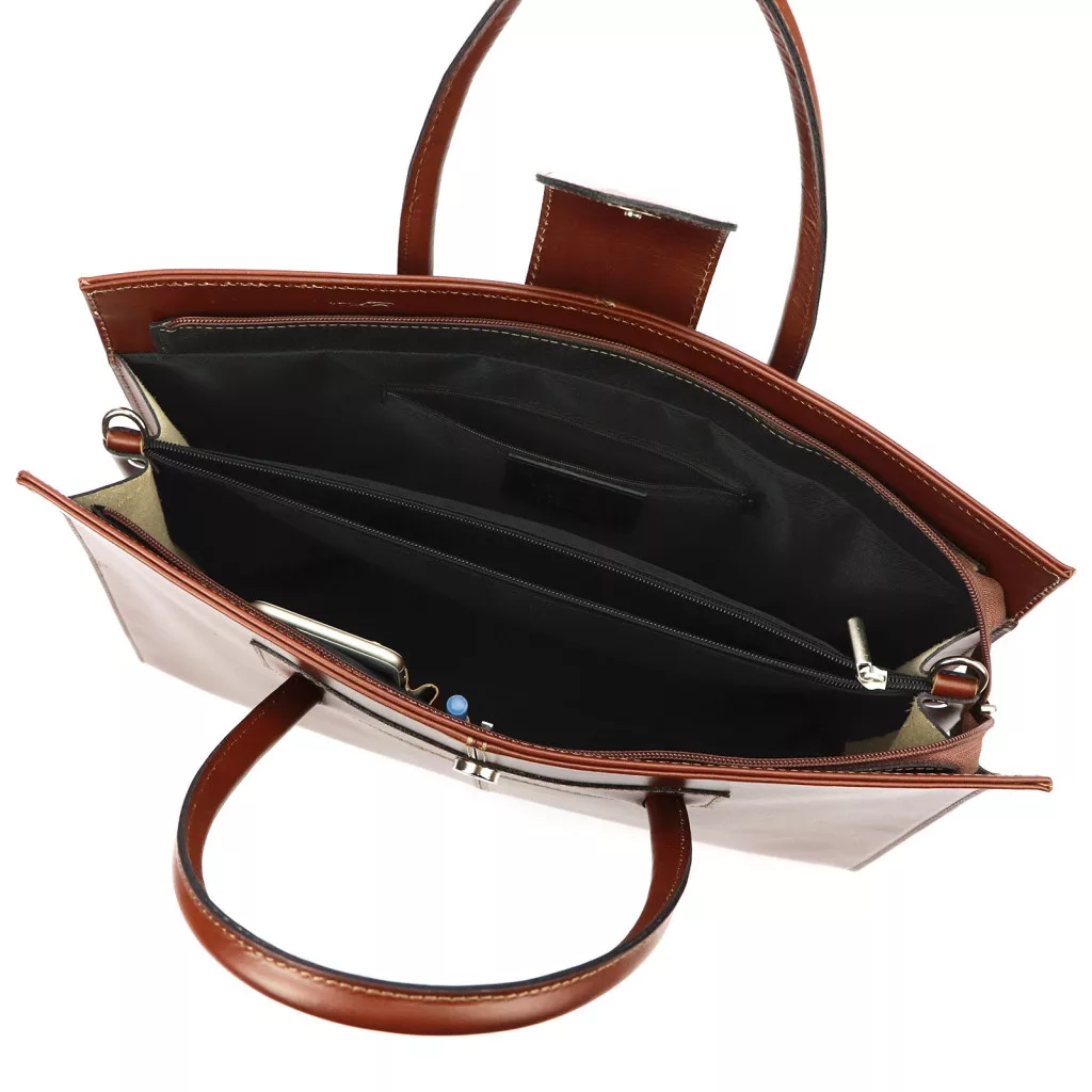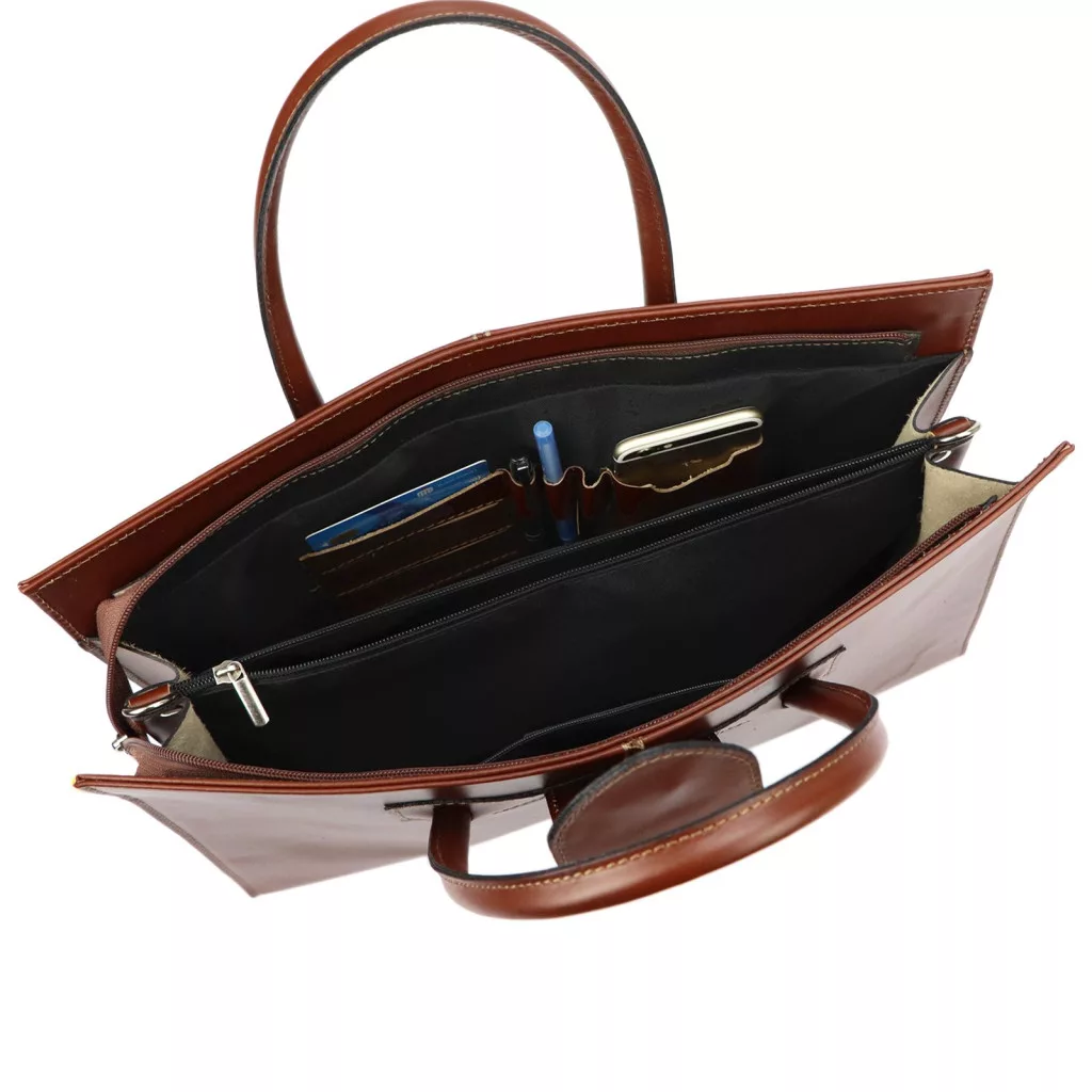 A Camilla 778 elegáns és kifinomult női aktatáska, amely a professzionális megjelenést ötvözi a praktikus funkcionalitással. Kiváló minőségű marhabőrből készült, így tartós, időtálló és prémium érzetű. Klasszikus barna színe meleg, nőies és stílusos megjelenést biztosít. Merev oldalfalai stabil tartást adnak, így a benne tárolt iratok, eszközök és okoseszközök mindig rendezettek és biztonságban maradnak. A táska átgondolt belső elrendezése lehetővé teszi, hogy könnyedén rendszerezze mindennapi kellékeit – legyen szó dokumentumokról, jegyzetfüzetről, tabletről vagy egyéb technikai kiegészítőkről.