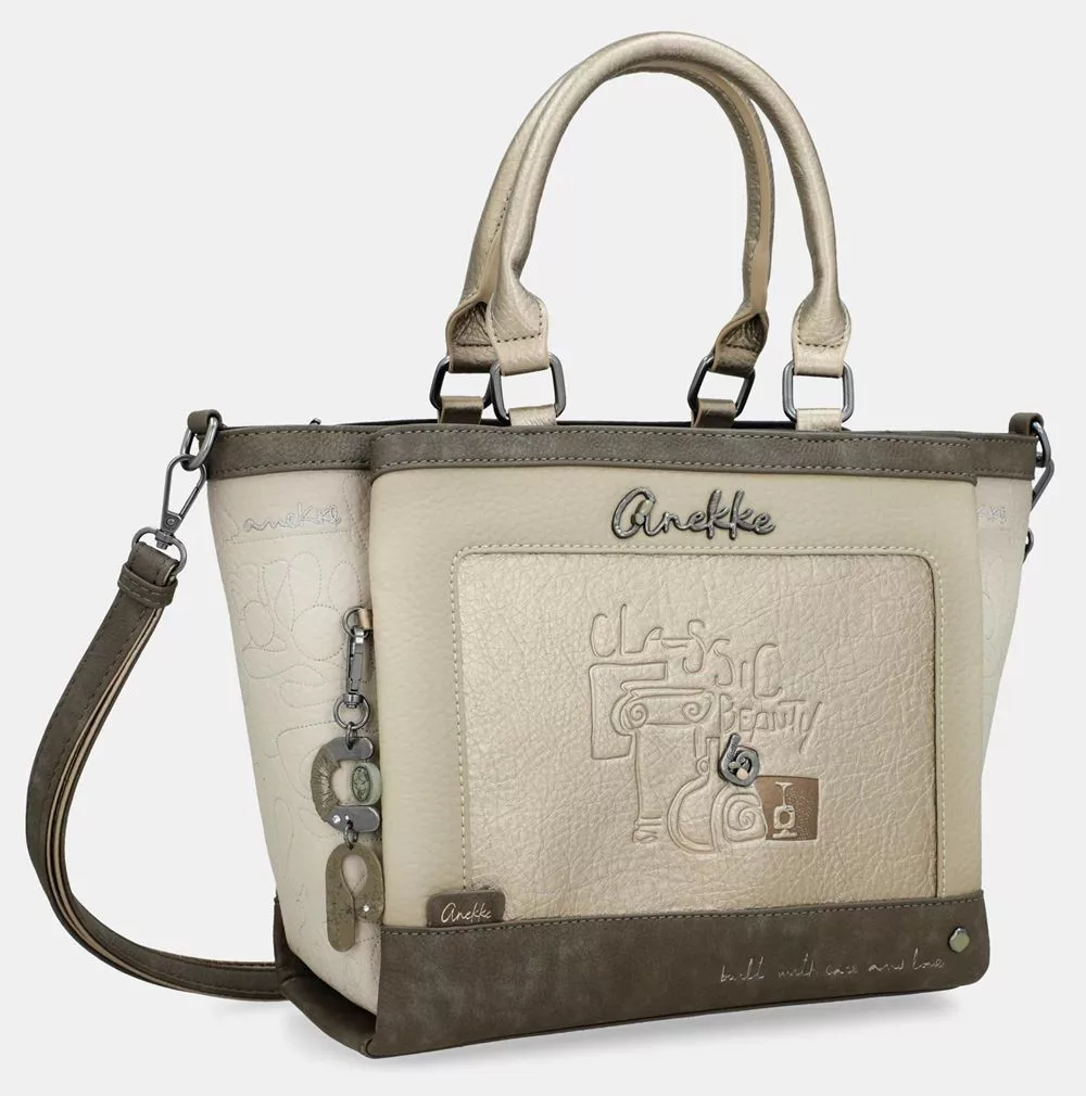 Az Anekke Amphora barna-krém kézitáska elegáns és praktikus kiegészítő, amely a mindennapi használatot és a stílust ötvözi. A részletgazdag design és a harmonikus barna-krém árnyalatok egyedi karaktert adnak ennek a modellnek, amely ideális választás városi programokra vagy elegánsabb alkalmakra.