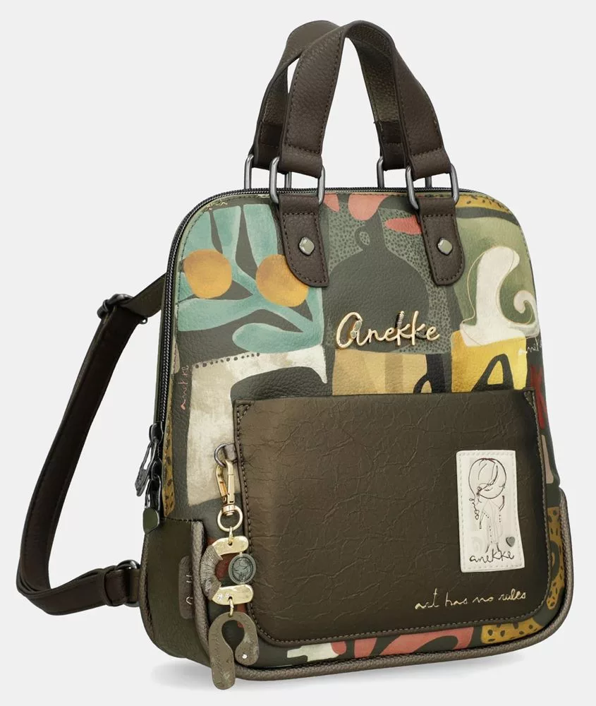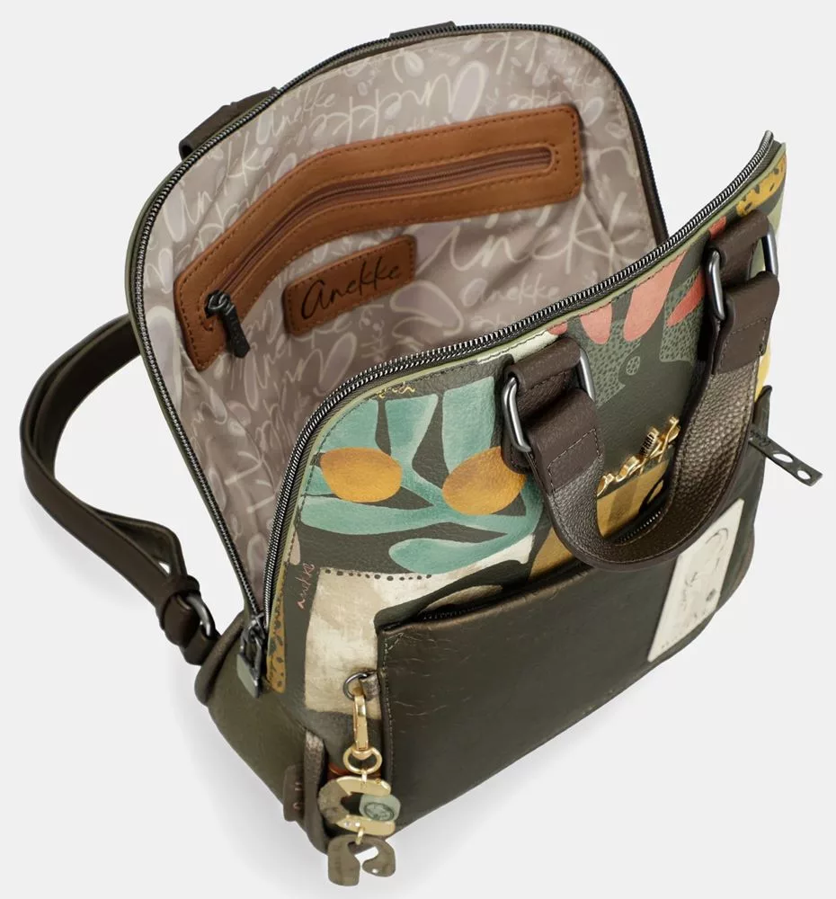 Az Anekke Amphora khaki–barna női hátizsák stílusos és praktikus választás a mindennapokra. A khaki és barna árnyalatok természetes, harmonikus kombinációja elegáns megjelenést kölcsönöz, amely könnyen illeszkedik a hétköznapi öltözékhez.