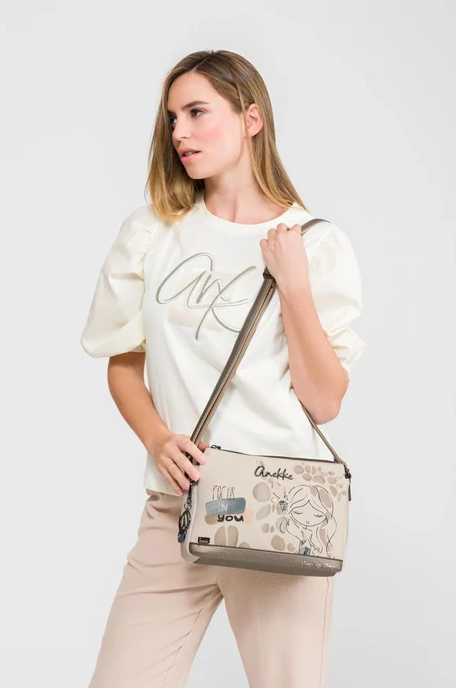 Anekke Olympia bézs-mogyoróbarna női válltáska, crossbody 31 x 20 x 12 cm