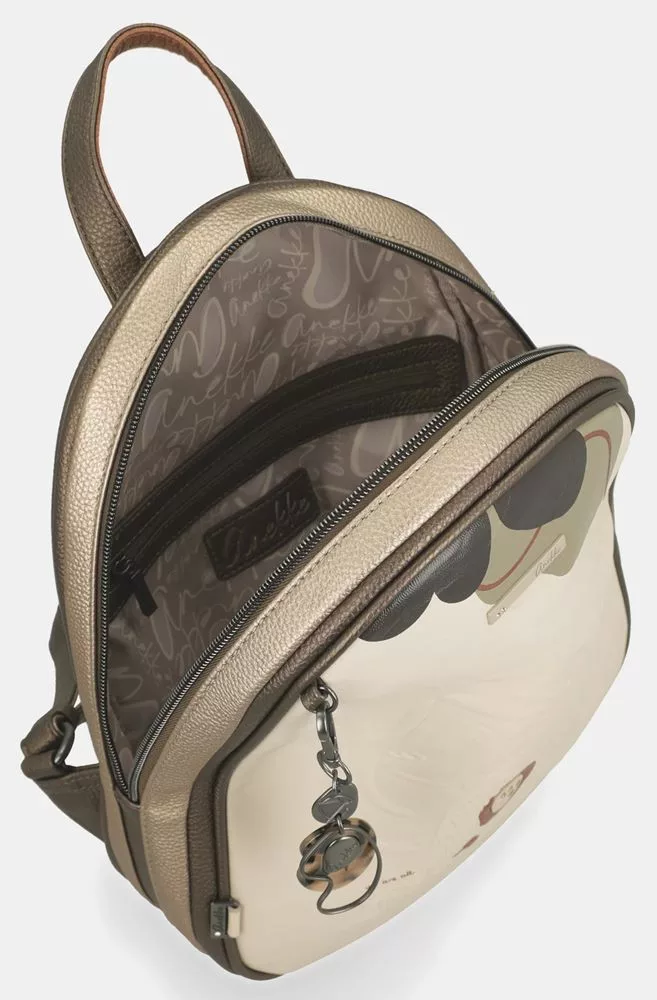 Az Anekke Gaia bézs–khaki hátizsák a funkcionalitást és a nőies eleganciát ötvözi egyetlen, kompakt darabban. A természetes bézs és khaki árnyalatok harmonikus kombinációja időtálló stílust biztosít, amely könnyen illeszkedik a mindennapi outfitekhez.