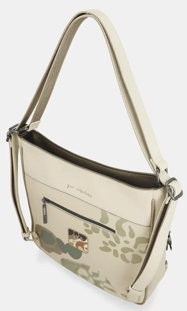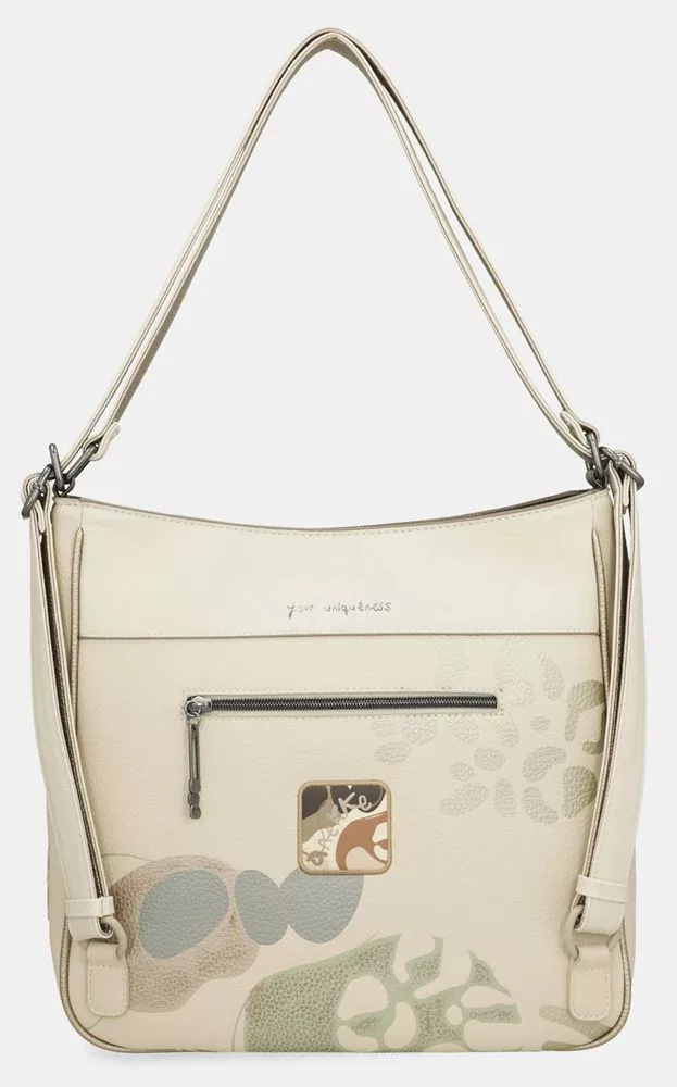 Az Anekke Gaia krém válltáska és hátizsák egy igazán sokoldalú és stílusos kiegészítő, amely a mindennapok praktikumát ötvözi az Anekke márkára jellemző bájos dizájnnal. A krém árnyalat eleganciát kölcsönöz, miközben a részletek játékossá és egyedivé teszik a táskát.