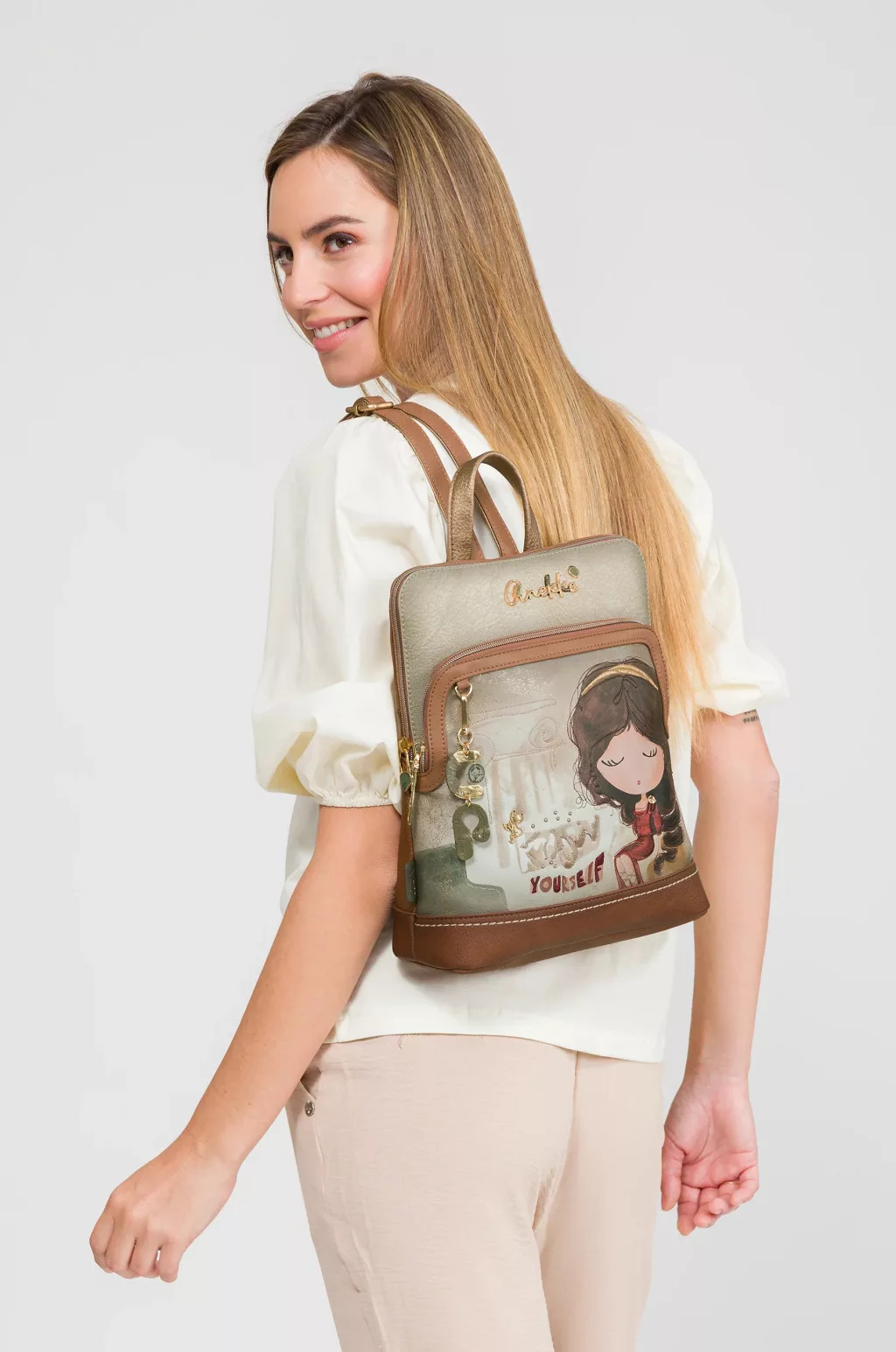 A márka ikonikus figurája Towanda, Anekke kalandvágyó macskája, aki sokak kedvence lett az évek során. Towanda gyakran megjelenik a kollekciók mintáin, kitűzőin vagy apró részleteiben, és vidám, játékos hangulatot ad a táskák megjelenésének.