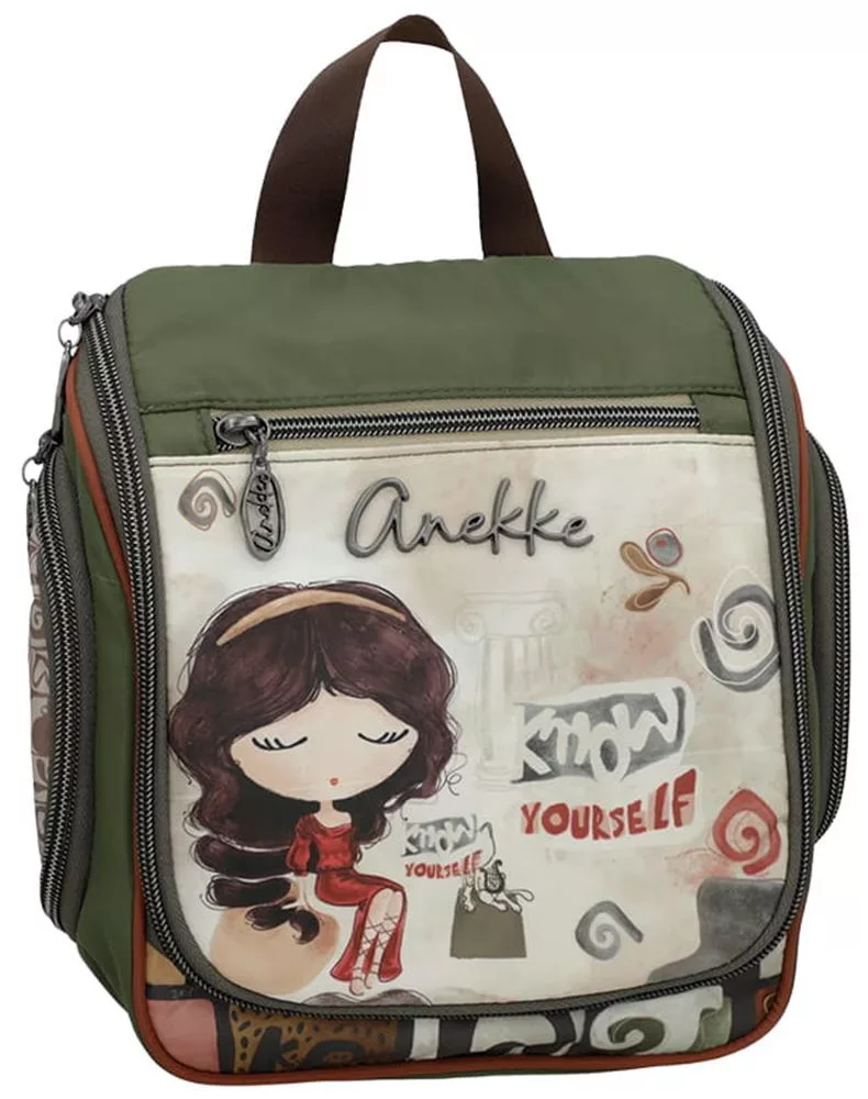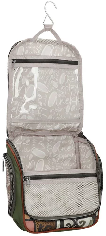 Az Anekke Muse khaki–barna kozmetikai táska praktikus és stílusos megoldás a kozmetikumok és szépségápolási eszközök rendszerezett tárolására. A khaki és barna árnyalatok elegáns, természetes megjelenést kölcsönöznek, miközben az Anekke kollekció jellegzetes részletei egyedi karaktert adnak a neszesszernek.