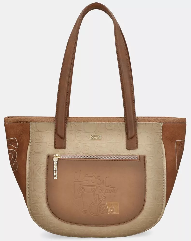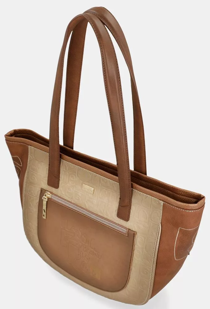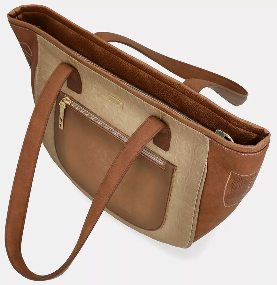 Az Anekke Muse konyakbarna-krém női válltáska egy tágas és elegáns shopper táska, amely ideális választás a mindennapokra. A konyakbarna és krém színek harmonikus kombinációja meleg, kifinomult megjelenést biztosít, amelyet az Anekke kollekció jellegzetes mintái és részletgazdag kidolgozása tesz igazán különlegessé.