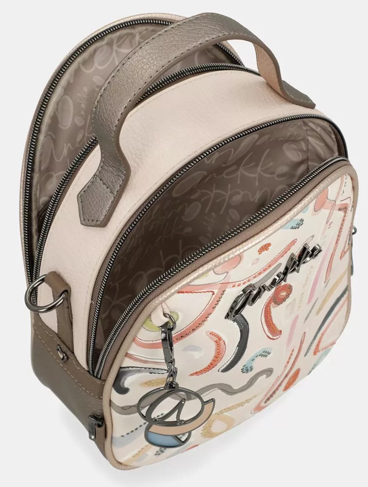 Anekke Olympia bézs-multikolor női hátizsák, hátitáska 23 x 21 x 10 cm