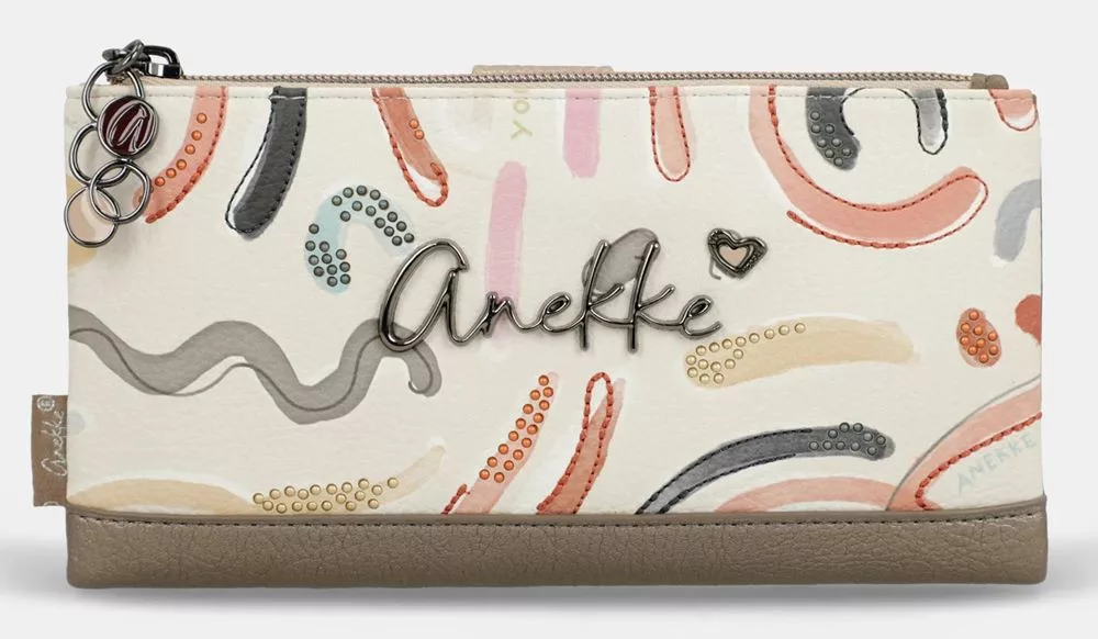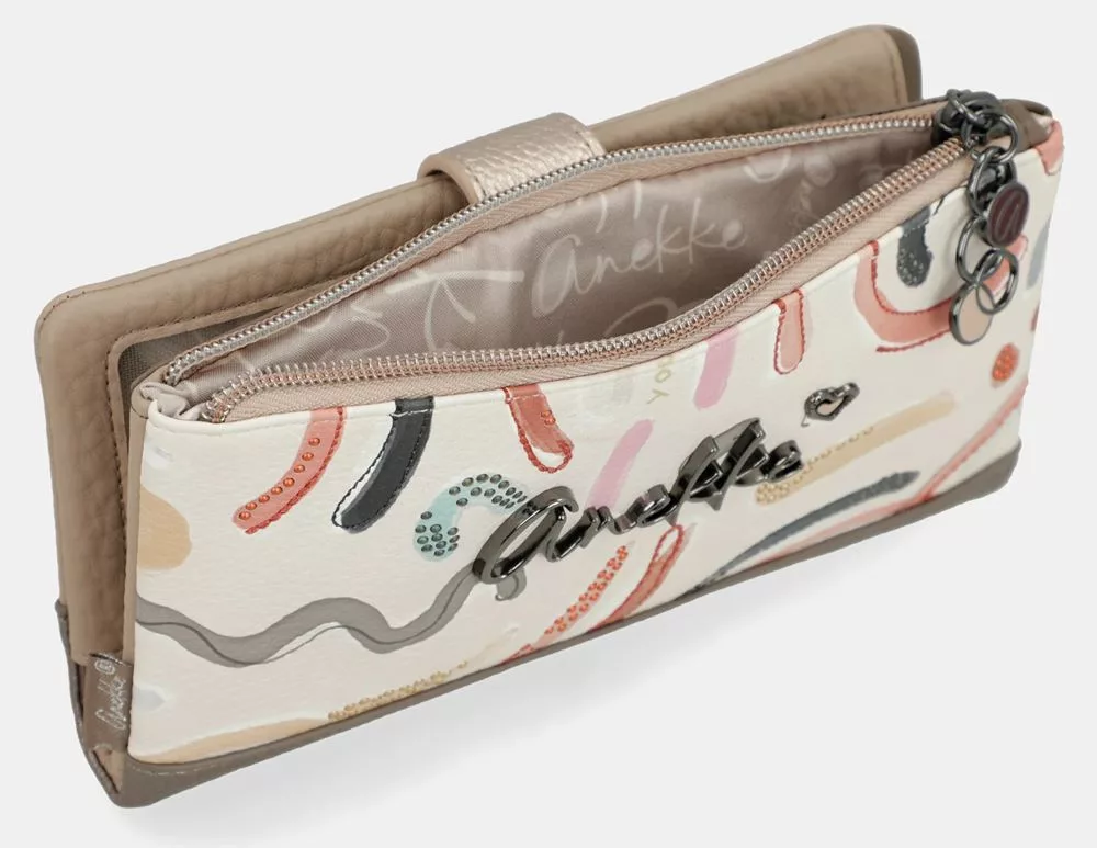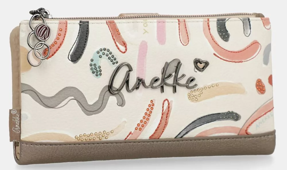 Az Anekke Olympia bézs–multikolor női pénztárca különleges, színes részleteivel és elegáns alapárnyalatával igazán figyelemfelkeltő darab. A bézs alapszín és a multikolor minták harmonikus kombinációja egyedi, mégis könnyen kombinálható megjelenést biztosít.