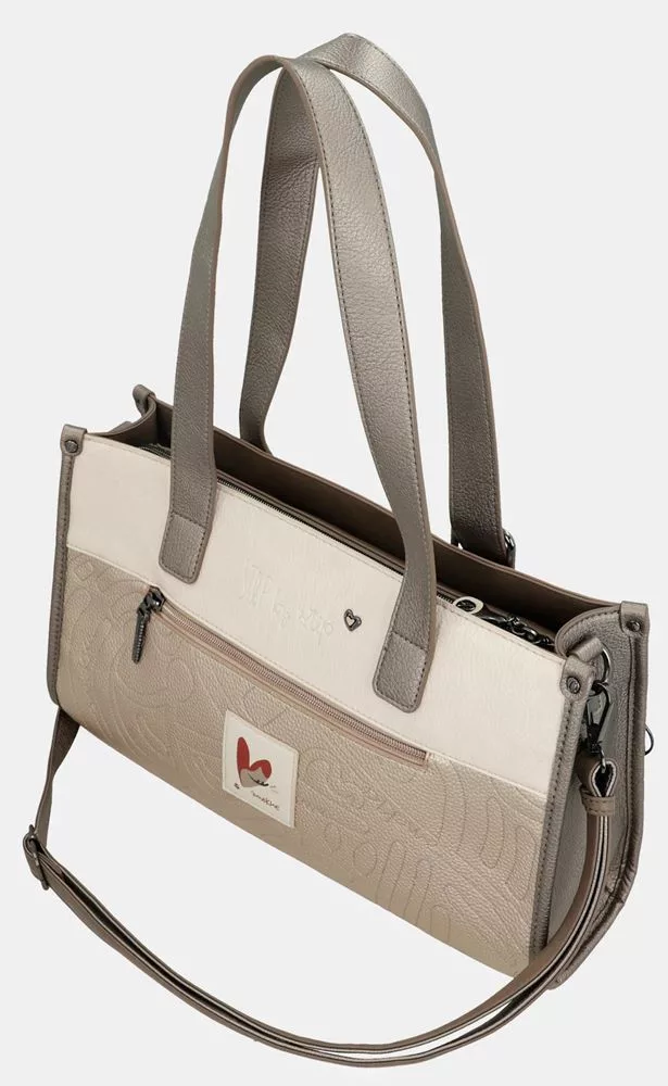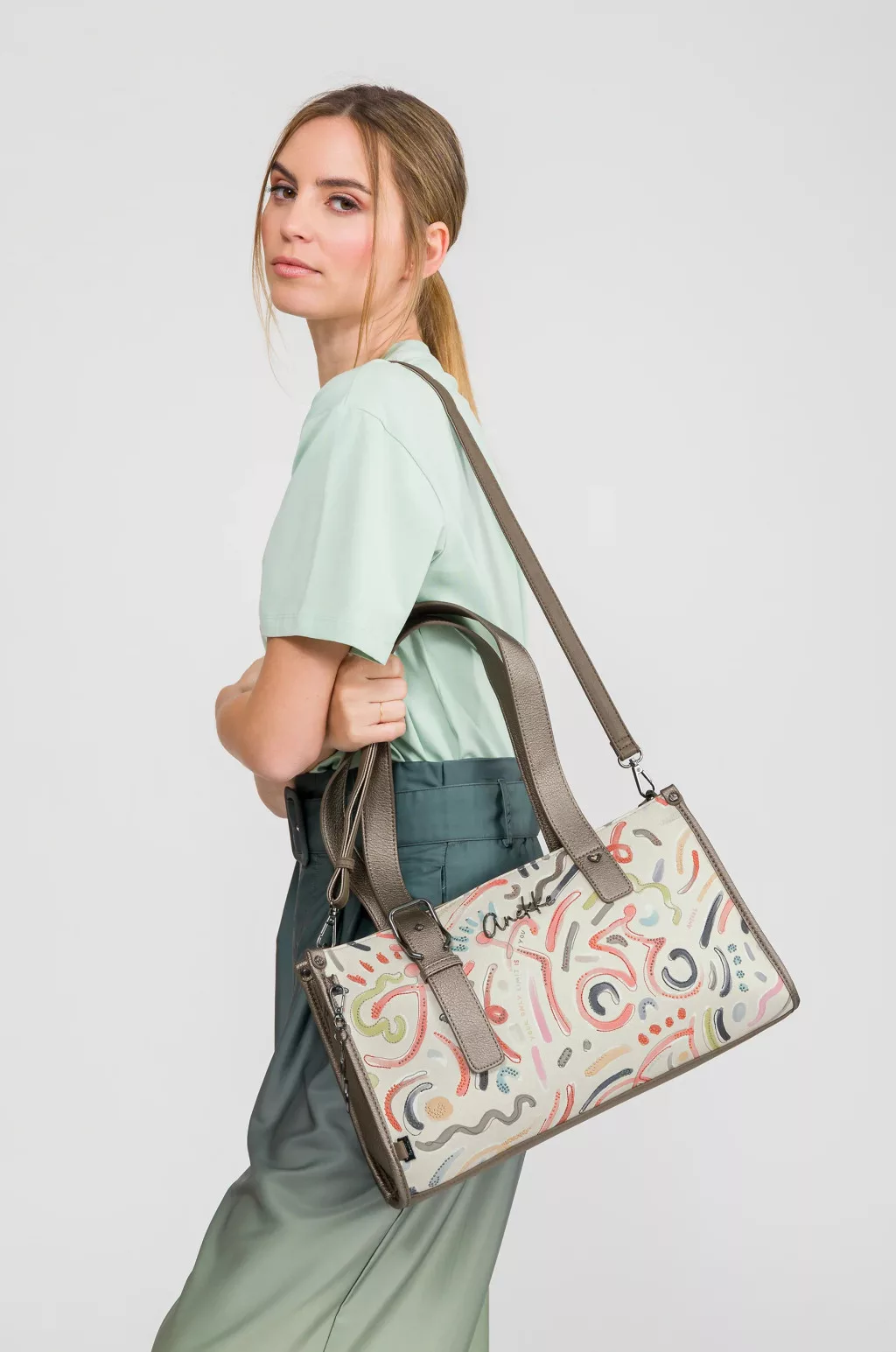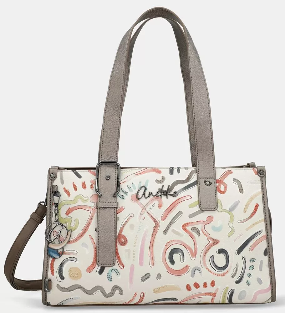Az Anekke Olympia bézs–multikolor válltáska elegáns és praktikus választás a mindennapokra. A bézs alapszínt kiegészítő színes részletek egyedi, nőies megjelenést kölcsönöznek a táskának, amely az Anekke kollekció jellegzetes, művészi hangulatát tükrözi.