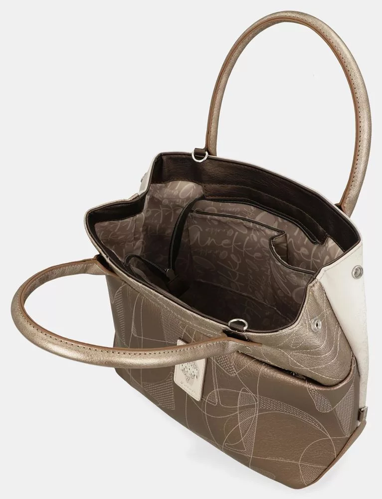 Az Anekke Sophia bézs-arany kézitáska elegáns és praktikus kiegészítő a mindennapokra. A Sophia kollekcióra jellemző részletgazdag design és a harmonikus bézs-arany árnyalatok egyedi karaktert adnak ennek a táskának, amely ideális városi programokra, munkába vagy elegánsabb alkalmakra.