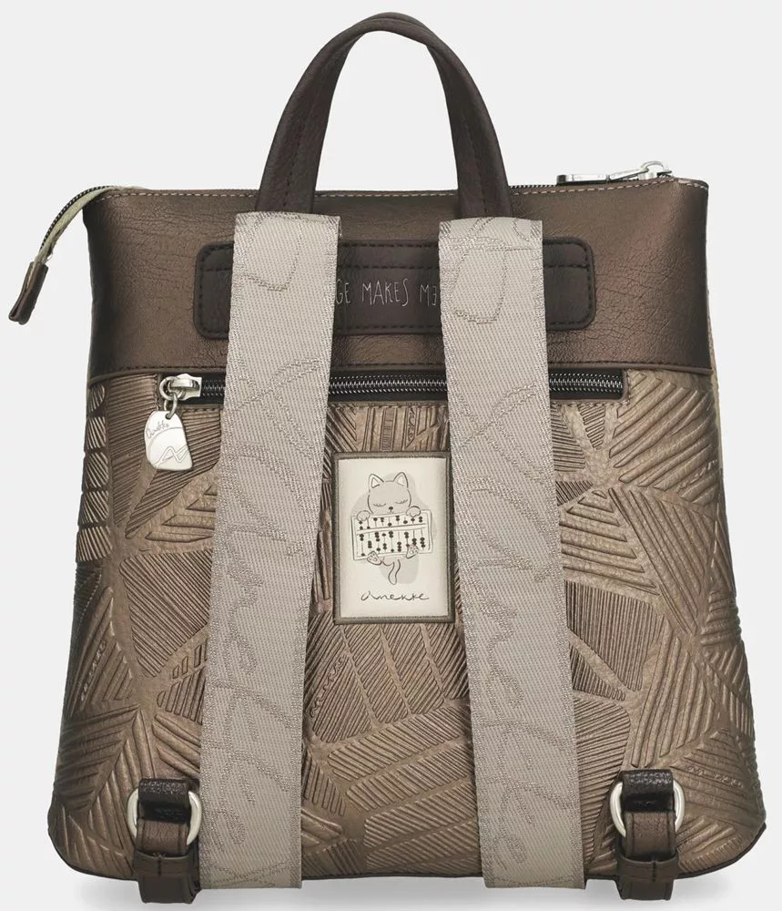 Az Anekke Sophia krém–bronz női hátizsák stílusos és praktikus kiegészítő, amely ideális választás a mindennapokra, városi sétákhoz vagy utazásokhoz. A krém és bronz színek elegáns kombinációja harmonikusan illeszkedik az Anekke Sophia kollekció egyedi mintáihoz és részleteihez, így a hátizsák egyszerre divatos és különleges megjelenést biztosít.