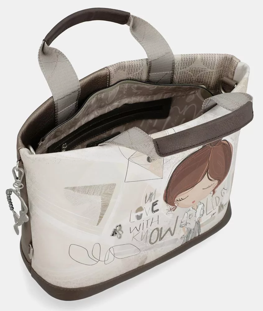 Anekke Sophia krém–mogyoró kézitáska vállpánttal 35 x 25 x 15 cm