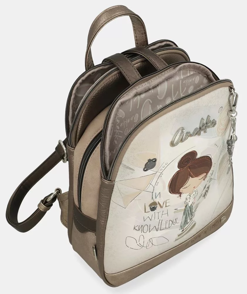 Anekke Sophia krém–mogyoró női hátizsák, hátitáska 25 x 30 x 12 cm