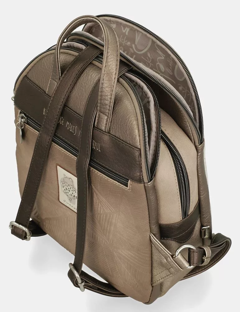 Az Anekke Sophia krém–mogyoró női hátizsák elegáns megjelenésével és praktikus kialakításával tökéletes választás a mindennapi használathoz. A krém és mogyoró árnyalatok harmonikus kombinációja kifinomult, nőies stílust kölcsönöz, amely könnyedén illeszkedik a hétköznapi öltözékhez.