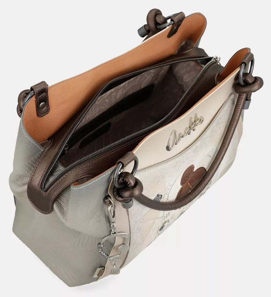 Az Anekke Sophia szürke–barna kézitáska elegáns és tágas kiegészítő, amely ideális választás a mindennapokra. A szürke és barna árnyalatok harmonikus kombinációja időtálló, nőies megjelenést kölcsönöz a táskának, miközben az Anekke kollekcióra jellemző részletgazdag stílust is megjeleníti.