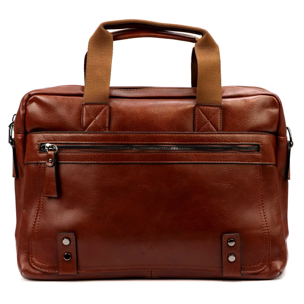 Letisztult, üzleties és funkcionális megjelenés. A konyakbarna rostbőr felület, a strukturált kialakítás és az átgondolt zsebkiosztás elegáns, mégis jól használható laptoptáskát eredményez a mindennapokra.