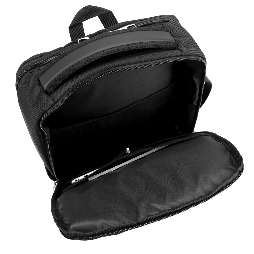 A tágas belső térben található párnázott, rögzíthető laptop rekesz, amely kifejezetten a 15,6 hüvelykes készülékek biztonságos szállítására készült. Emellett több nyitott rekesz és zárható zseb áll rendelkezésre, amelyek lehetővé teszik a dokumentumok, töltők, kiegészítők és személyes tárgyak könnyű, logikus elrendezését. A mindennapi használathoz optimális méret és az uniszex design együttese ezt a hátizsákot kiváló munka- vagy iskolatárssá teszi.