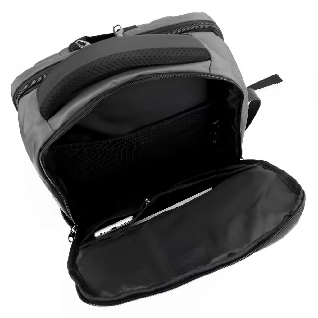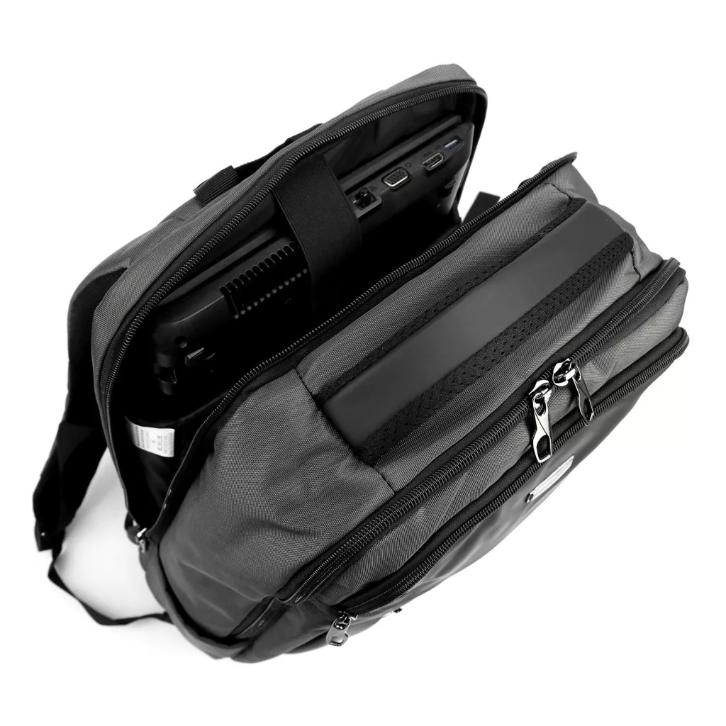 A tágas belső térben található párnázott, rögzíthető laptop rekesz, amely kifejezetten a 15,6 hüvelykes készülékek biztonságos szállítására készült. Emellett több nyitott rekesz és zárható zseb áll rendelkezésre, amelyek lehetővé teszik a dokumentumok, töltők, kiegészítők és személyes tárgyak könnyű, logikus elrendezését. Az uniszex stílus és a szürke szín kombinációja modern, sokoldalú megjelenést biztosít, amely illeszkedik bármilyen hétköznapi vagy munkahelyi szetthez.