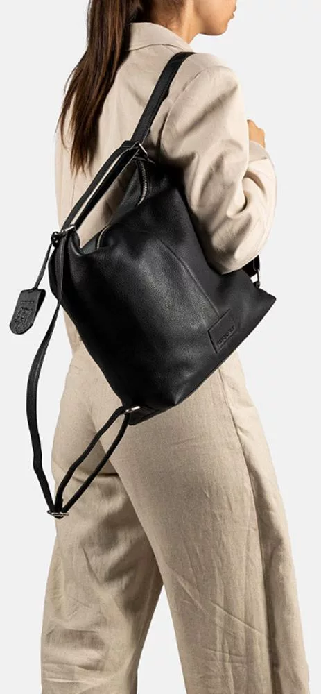 Burkely Soft Skylar fekete női bőr válltáska, hátizsák 31 × 31 cm