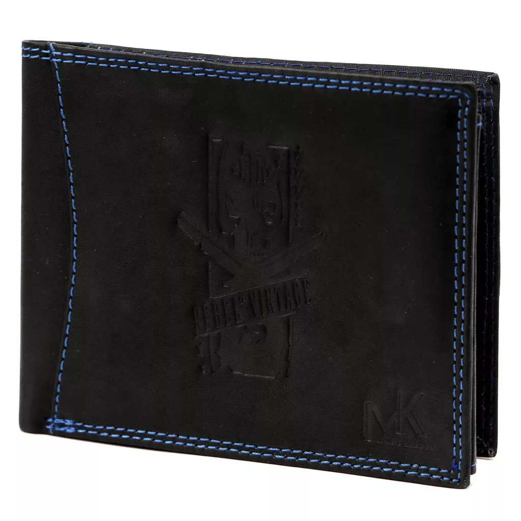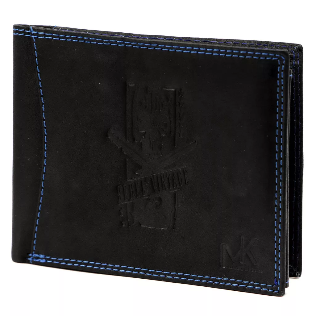 A Money Kepper fekete férfi marhabőr pénztárca markáns, karakteres megjelenését a western stílus ihlette részletek határozzák meg, amelyek erőt, szabadságvágyat és klasszikus férfias értékeket sugároznak. A letisztult fekete bőr időtálló, határozott megjelenést biztosít, míg a széleken futó kék díszvarrás friss, modern kontrasztot ad az összképhez. A valódi marhabőr puha tapintású, ugyanakkor strapabíró alapanyag, amely hosszú távon is megőrzi minőségét.