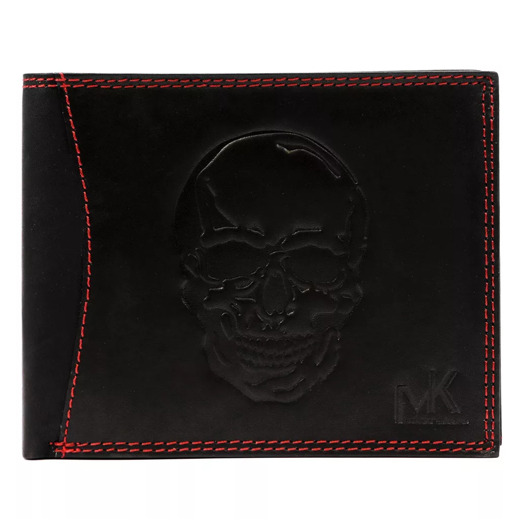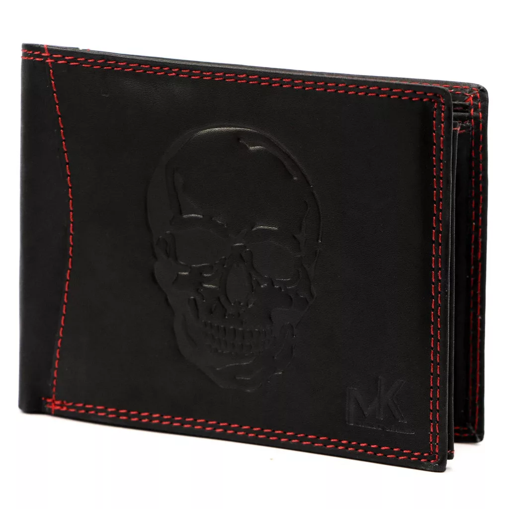 Money Kepper CDD 5600 SKULL fekete-piros férfi bőr pénztárca, koponya mintával 12.5 x 10 x 2.5 cm