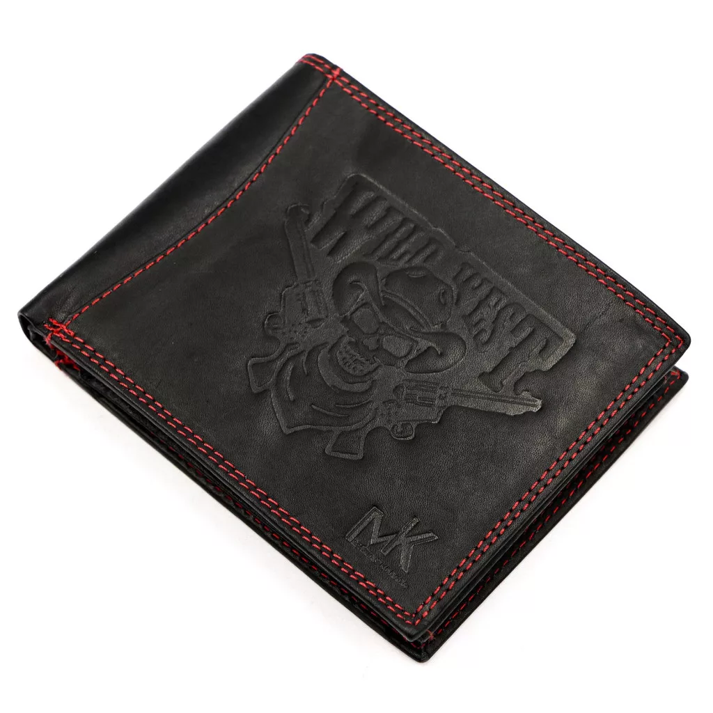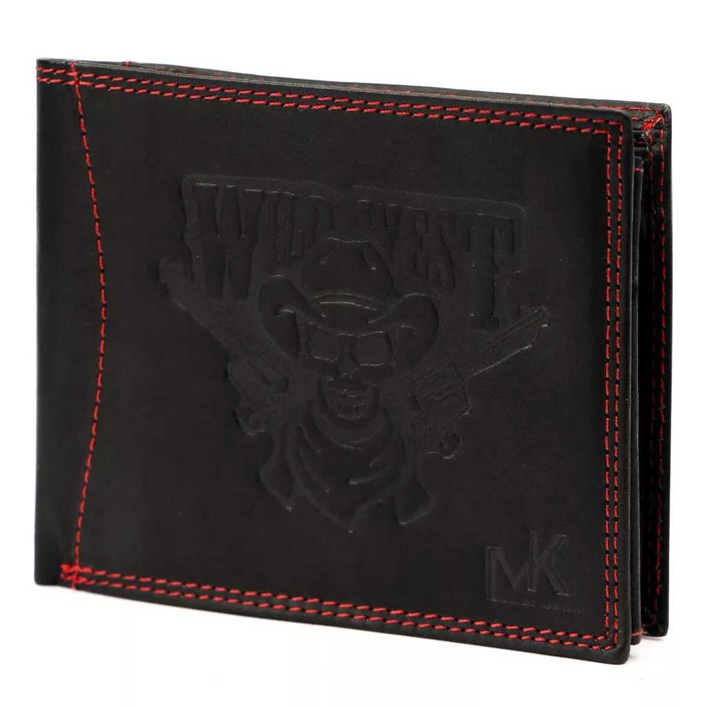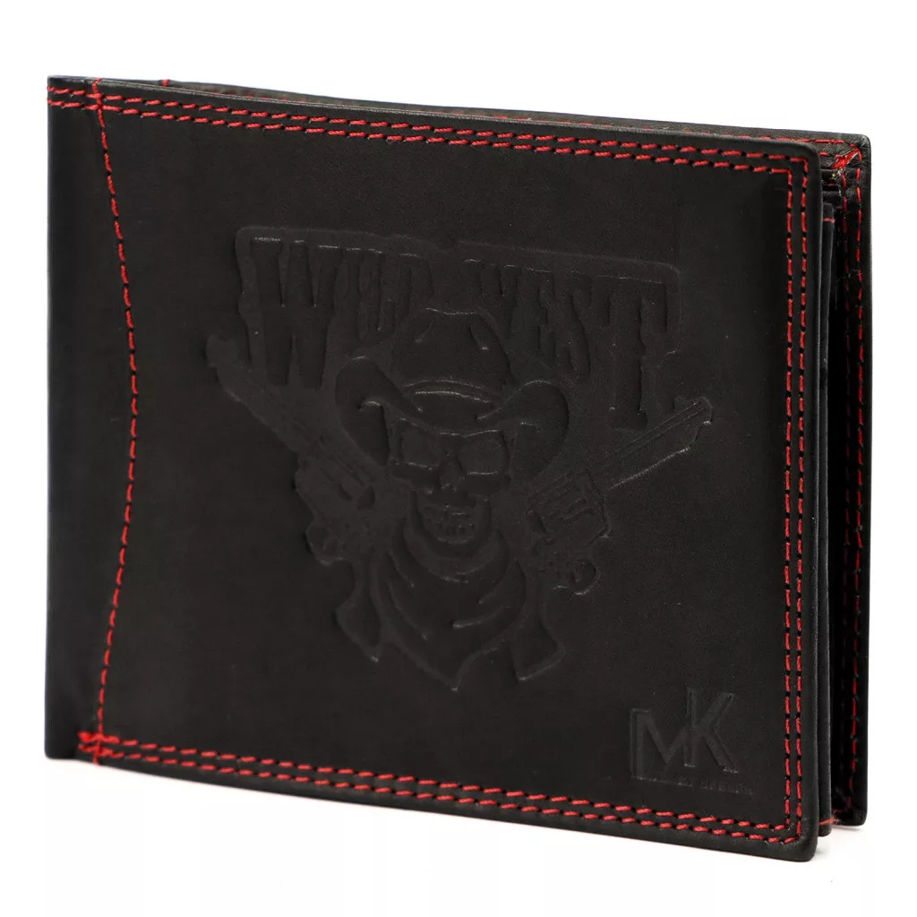 Money Kepper CDD 5600 WILD WEST fekete-piros férfi bőr pénztárca, Western motívummal 12.5 x 10 x 2.5 cm
