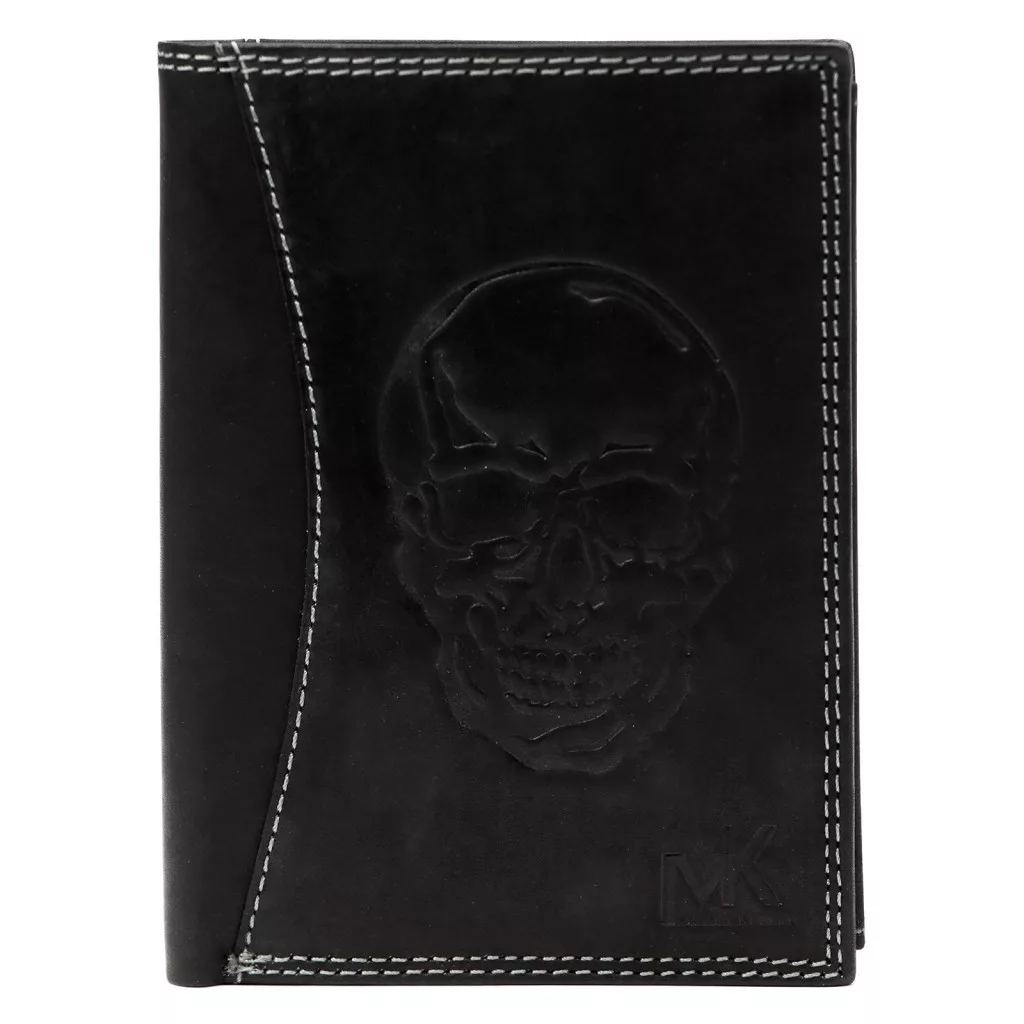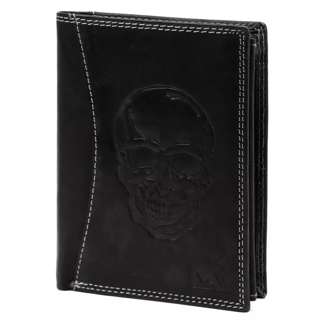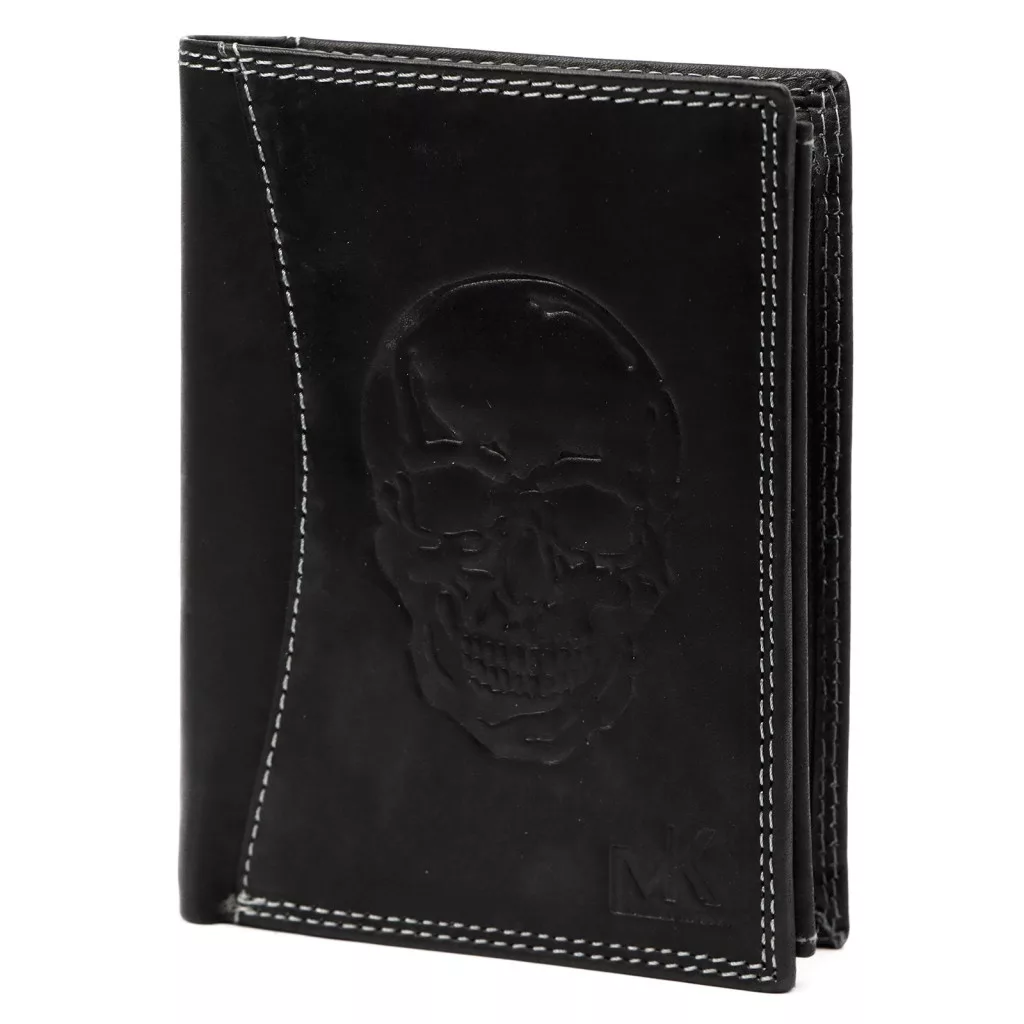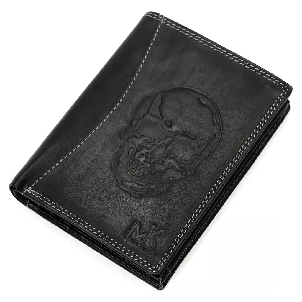 Money Kepper CDD 5601 SKULL fekete férfi bőr pénztárca, koponya motívummal 10 × 13 × 2,5 cm