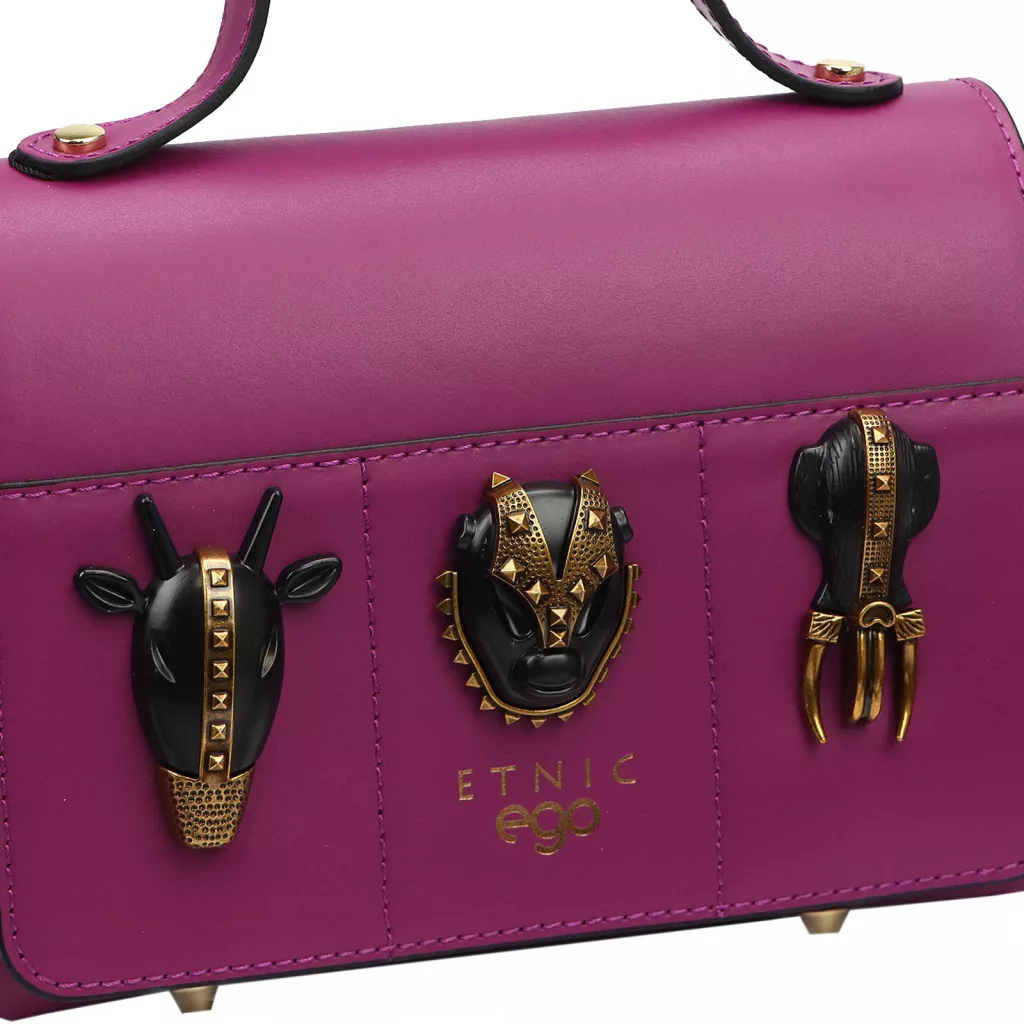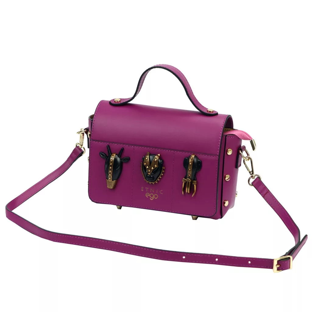 Merevebb tartású, doboz formájú táska, amely strukturált megjelenésével elegáns és modern hatást kelt. Az elülső részt három különleges, 3D állatfigurás dísz elem teszi igazán egyedivé, amelyeket finom szegecses részletek egészítenek ki. Az alsó részen elhelyezett fém védőlábak nemcsak praktikusak, hanem tovább erősítik a prémium érzetet.
