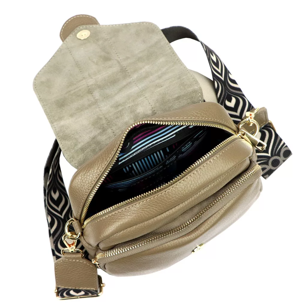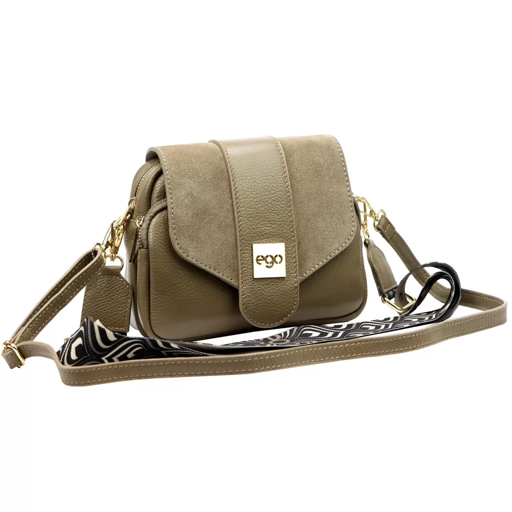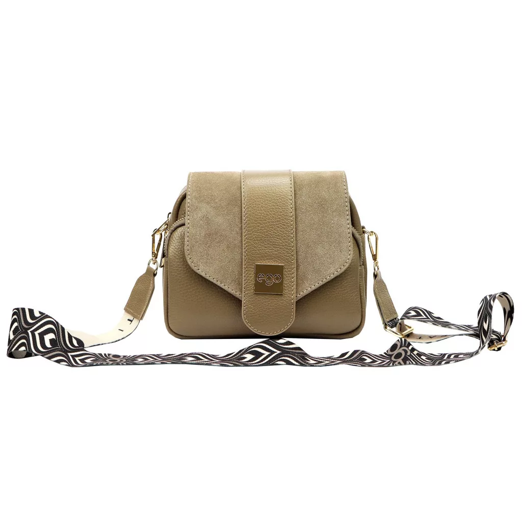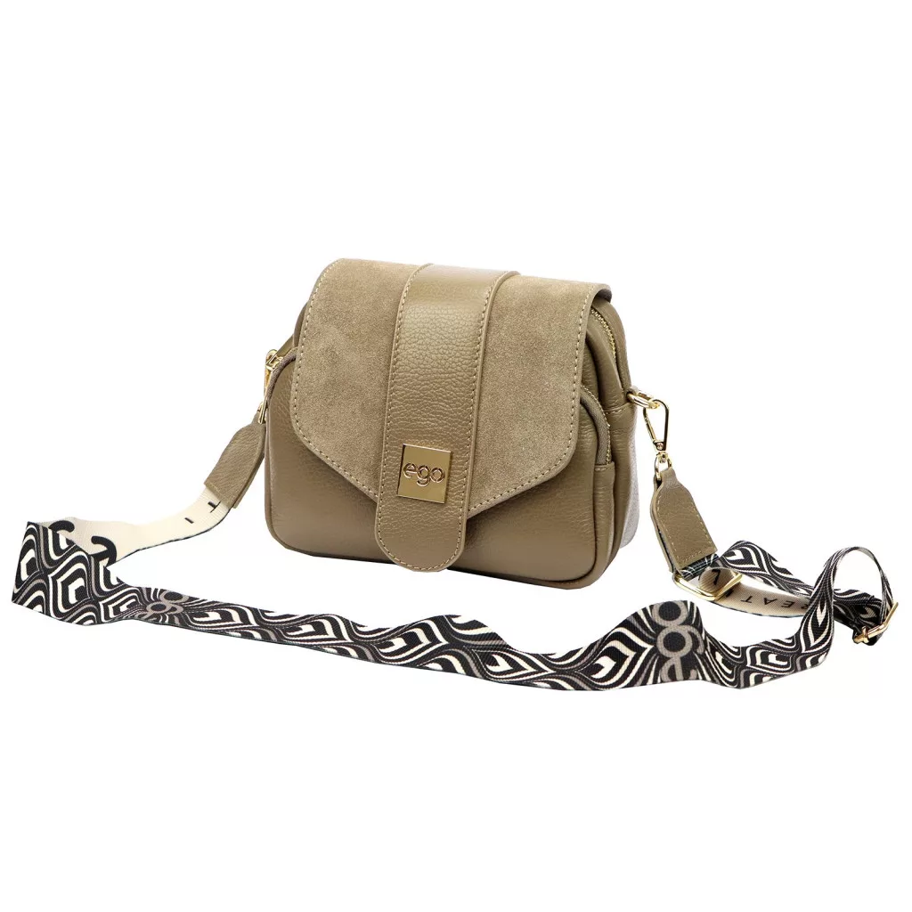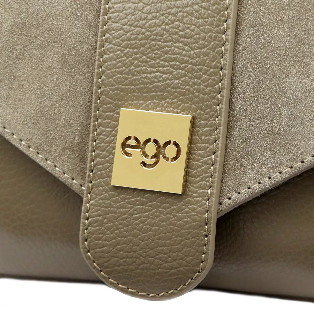 A taupe szín a feng shui szerint a stabilitást, a megbízhatóságot és a belső egyensúlyt szimbolizálja, miközben modern és kifinomult alternatívát kínál a klasszikus bézs és szürke árnyalatok között. Visszafogott, elegáns tónusa könnyen illeszkedik a hétköznapi és elegáns öltözékekhez egyaránt. A táska lehajtható, patentos fedéllel és kétrekeszes, cipzáras belső kiosztással rendelkezik, amely átlátható és biztonságos tárolást biztosít. Az aranyozott fém EGO felirat diszkrét hangsúlyt ad az összképnek.
