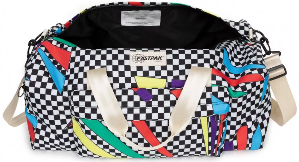 Az Eastpak DUFFELSON CHEX FLEX utazótáska egy nagy főrekesszel és további elülső és belső zsebekkel rendelkezik. A táska kézben hordozható,  illetve állítható, és levehető vállpántja segítségével vállon is könnyen viselhető.