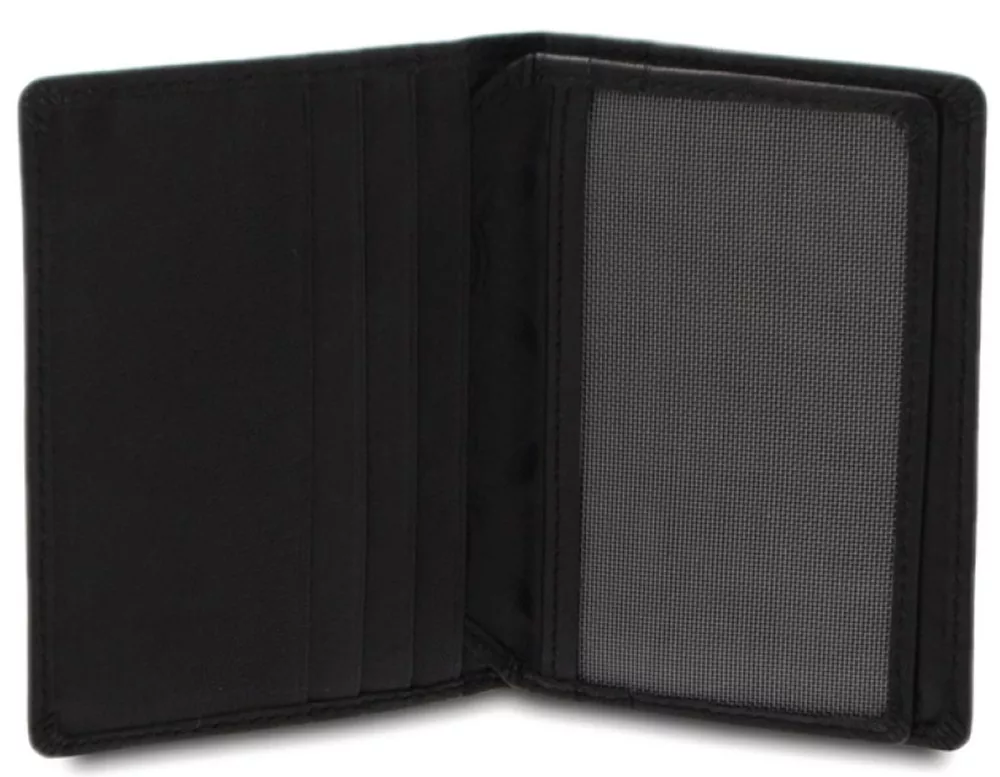 Giudi fekete színű, selyemfényű bőr kártyatartó, irattartó.