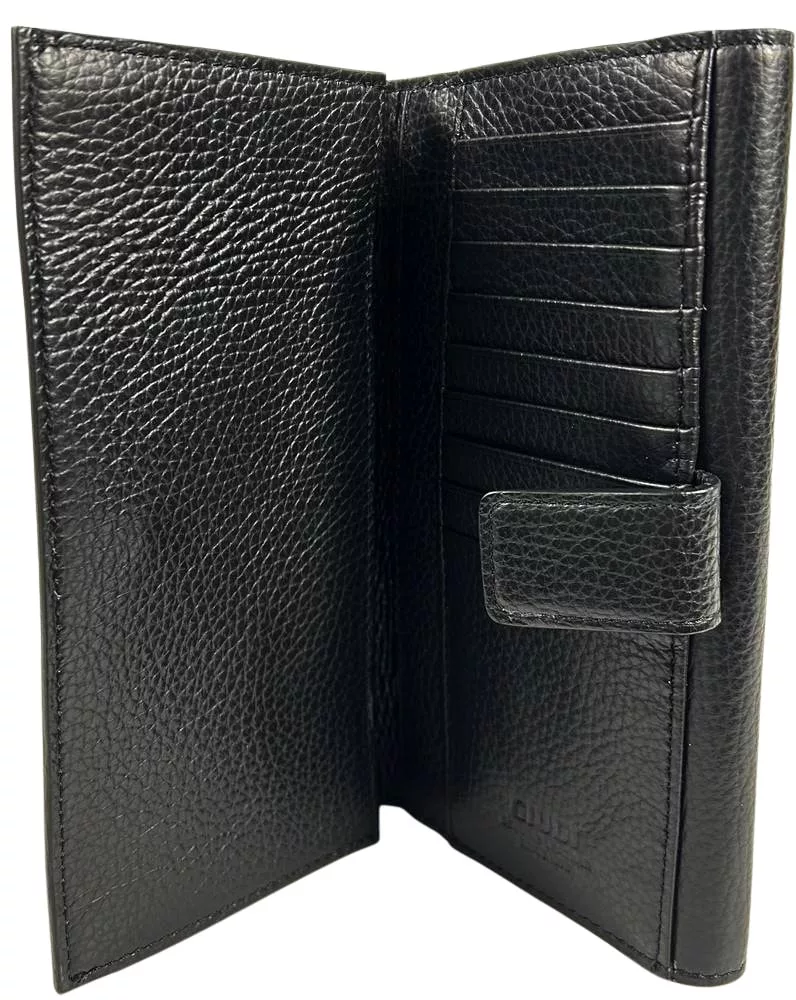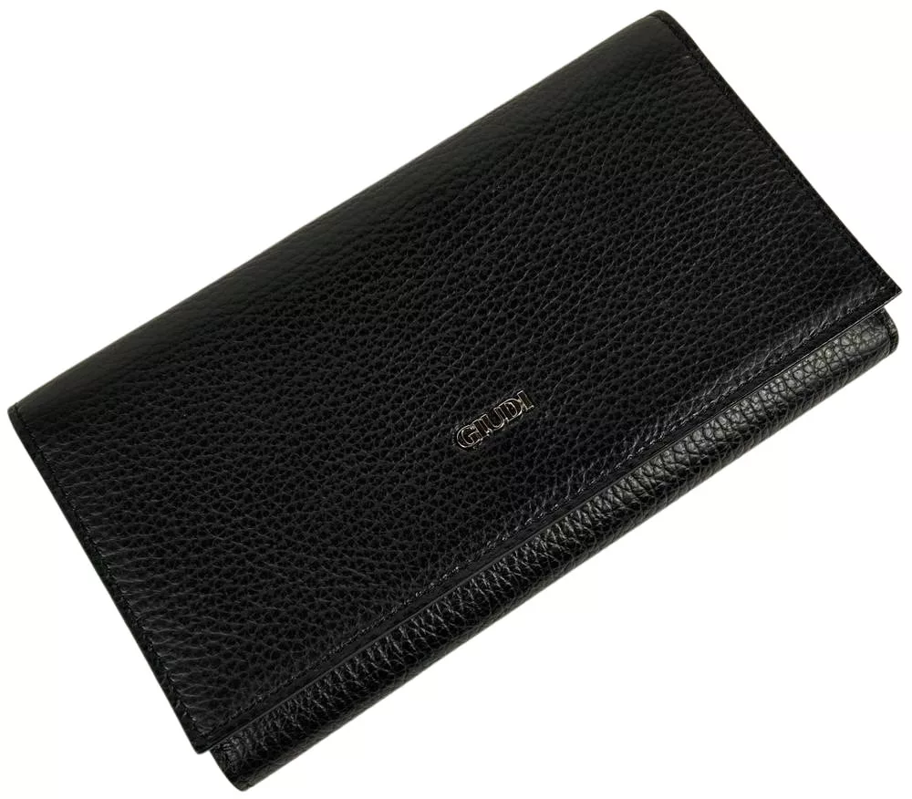 Giudi nagyméretű fekete női bőr pénztárca, brifkó 19 x 11 cm