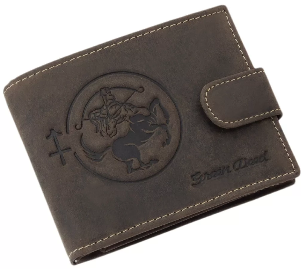 GreenDeed férfi bivalybőr pénztárca Nyilas csillagjegy mintával 12 × 9,2 cm