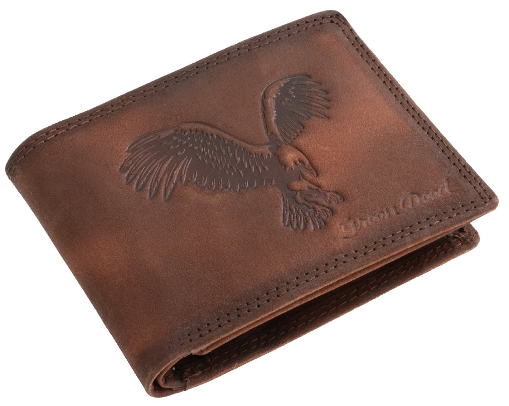 GreenDeed vintage stílusú barna bőr pénztárca, sas motívummal