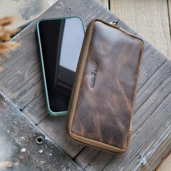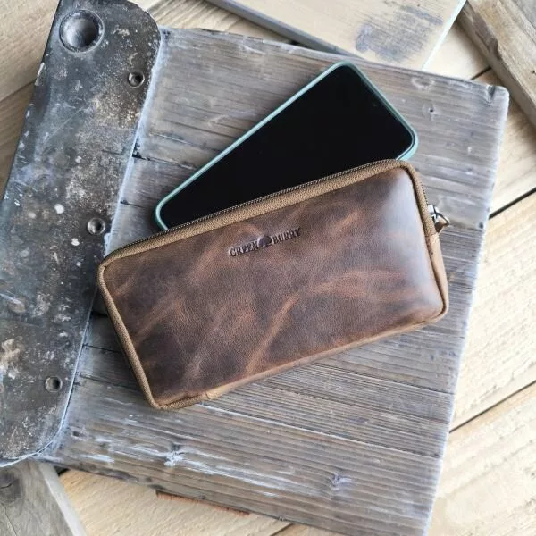 Ez a Greenburry valódi bőr cipzáras övtáska, mobiltelefon tartóval a Vintage kollekció egyik legpraktikusabb darabja, amelyet kifejezetten a modern okostelefonok biztonságos és kényelmes hordozására terveztek. Az antikbarna, természetes marhabőr „used look” megjelenése karakteres, időtálló stílust képvisel, miközben a használat során kialakuló patina minden darabot egyedivé tesz.