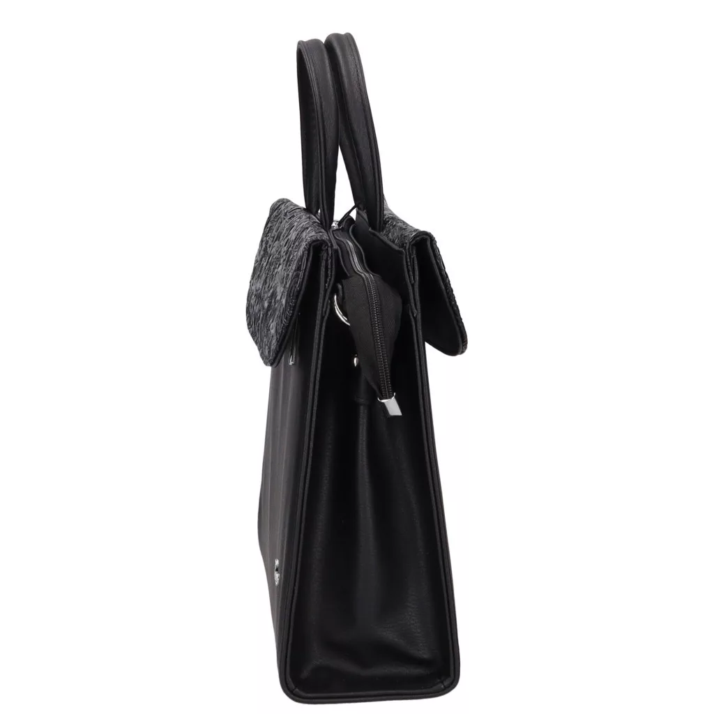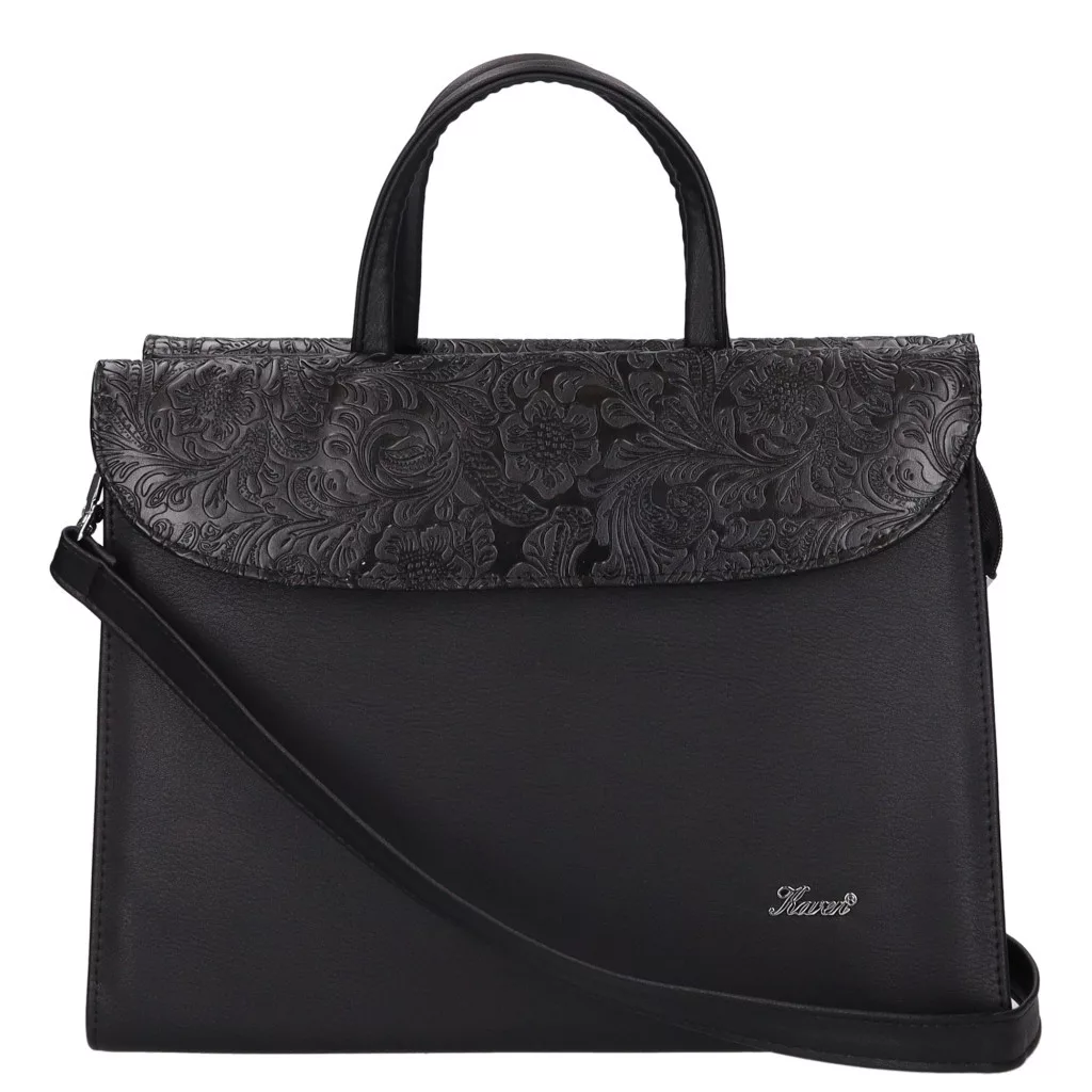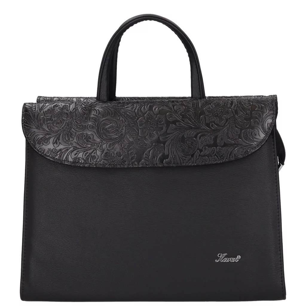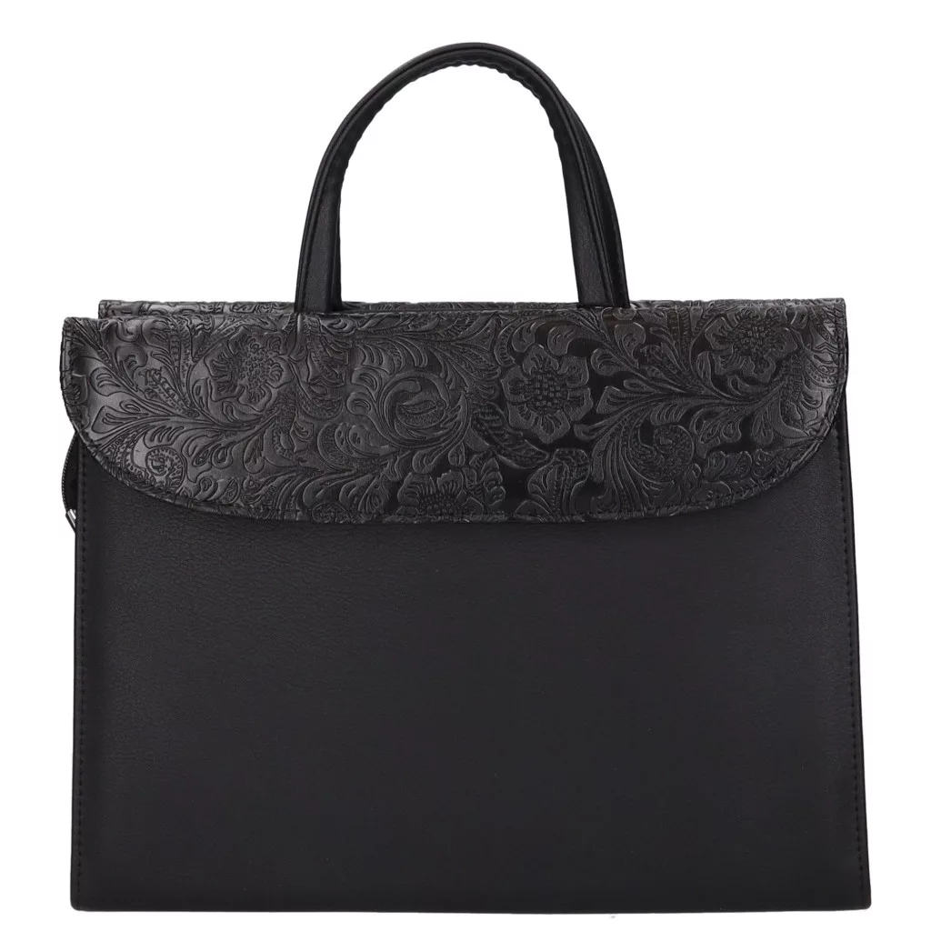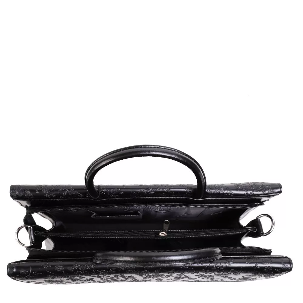 A Klotylda 284 fekete virágmintás rostbőr női aktatáska elegáns, nőies és igazán praktikus választás mindennapi munkavégzéshez.