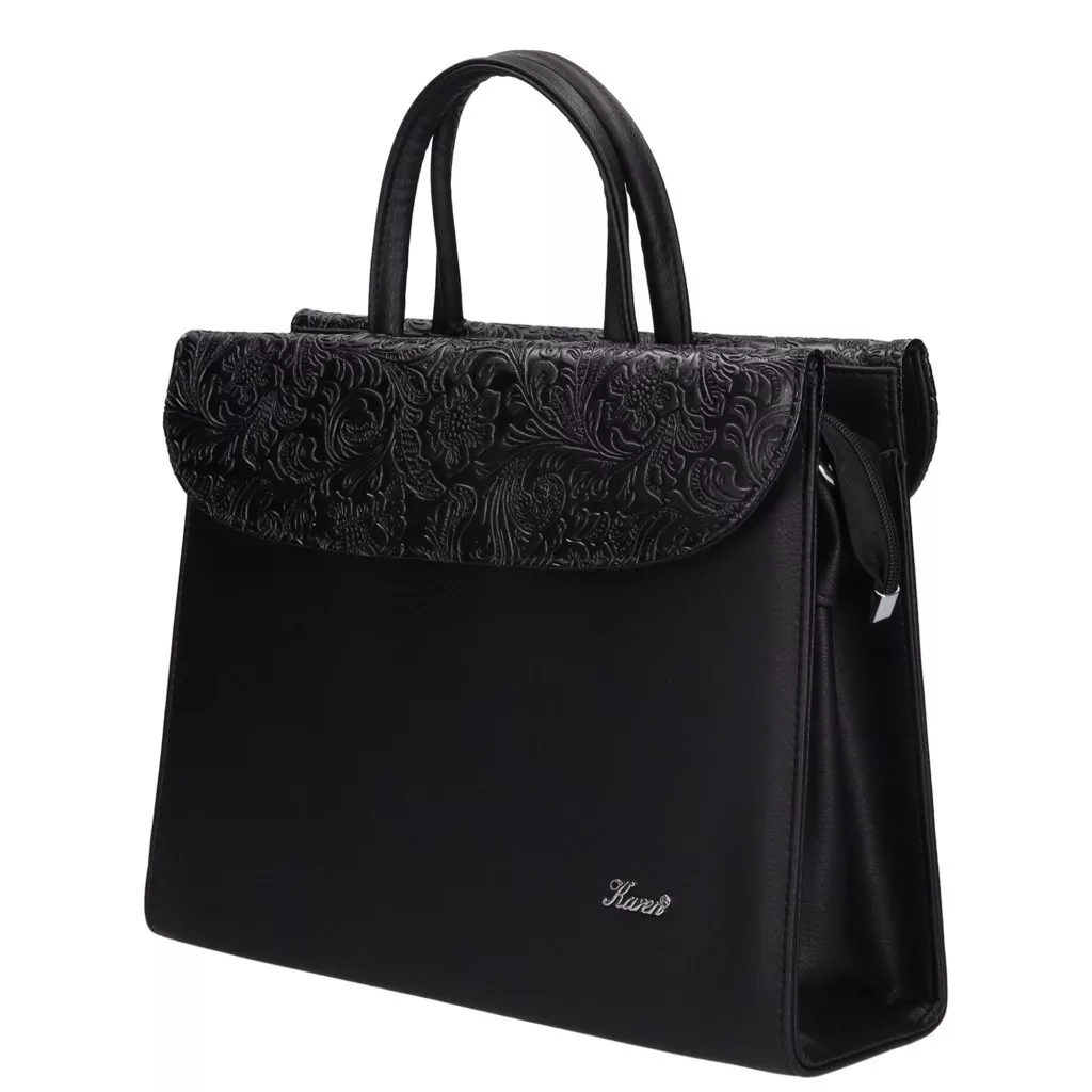 Karen Klotylda 284 fekete virágmintás, női, rostbőr aktatáska 37 x 28 x 10 cm