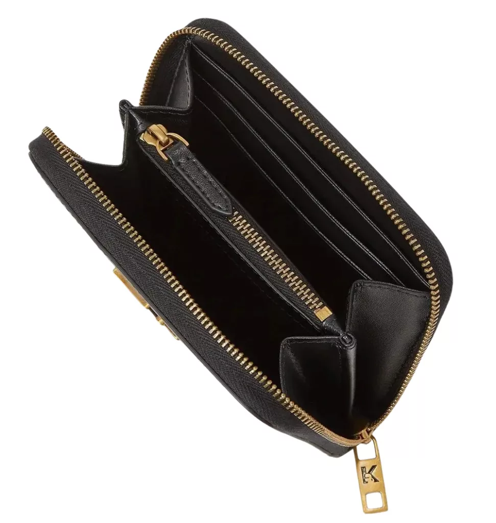 A Karl Lagerfeld fekete női bőr pénztárca időtlen eleganciát és praktikumot kínál – tökéletes választás azoknak, akik a kifinomult stílust és a mindennapi funkcionalitást keresik egyetlen luxuskiegészítőben.