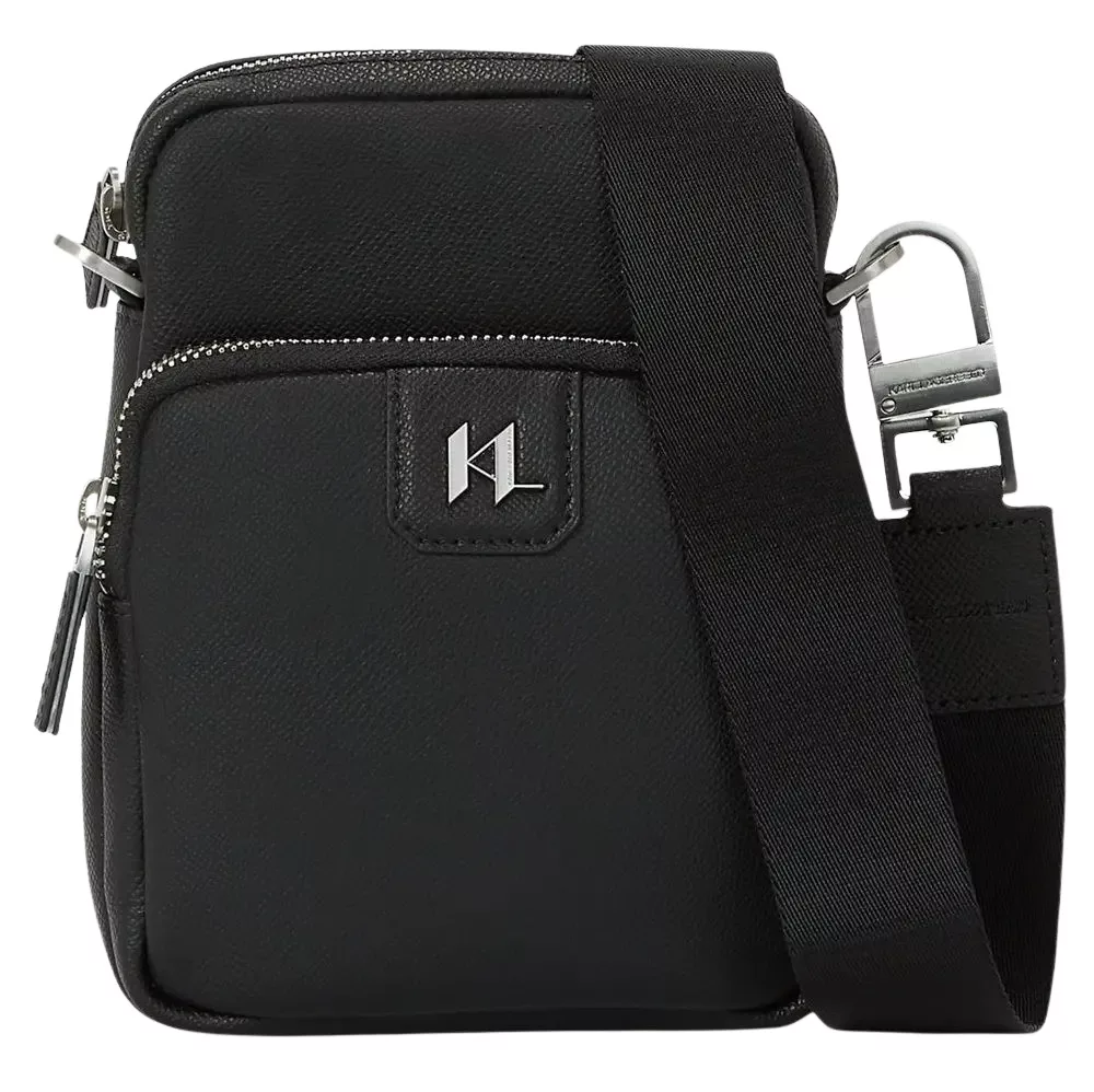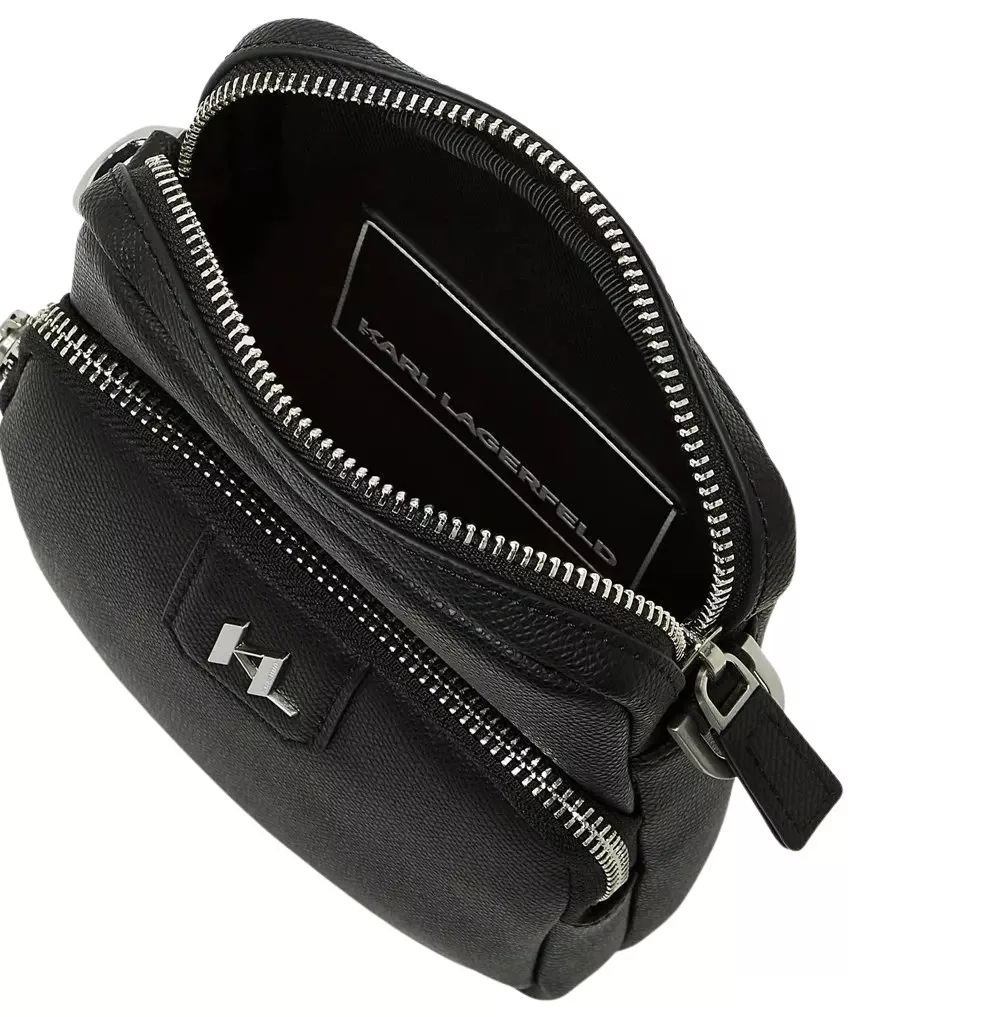 A Karl Lagerfeld férfi fekete valódi bőr oldaltáska a modern elegancia és a praktikum tökéletes ötvözete. Letisztult, minimalista kialakítását a kontrasztos KL Monogram díszítés emeli ki, amely egyedivé és karakteressé teszi a megjelenését. Mindennapi használatra ideális választás, hiszen kis mérete ellenére rendkívül funkcionális.