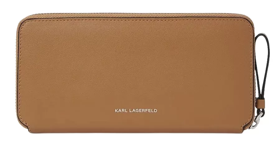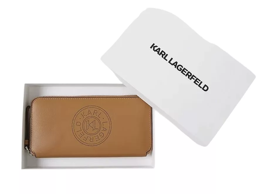 A Karl Lagerfeld nagyméretű konyakbarna női bőr pénztárca elegáns, praktikus és időtálló kiegészítő, amely tökéletes választás mindennapi használatra — a stílus, a funkcionalitás és a prémium minőség jegyében.