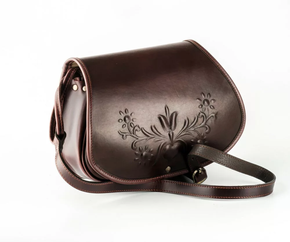Blázek & Anni közepes méretű domború virág mintás bőr vadásztáska 28 x 21 cm
